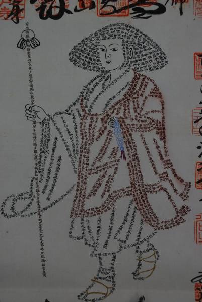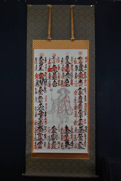 【真作】【作品状態】 本紙は絹本肉筆です。弘法大師は般若心経で書かれています。