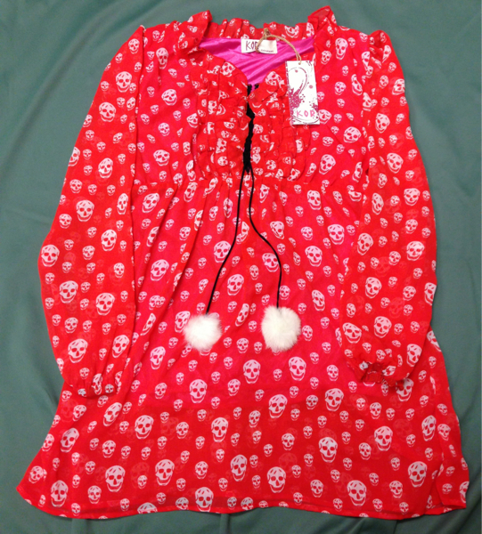 こちらはKORの未使用ドクロ総柄チュニックミニワンピになります★(2388)
