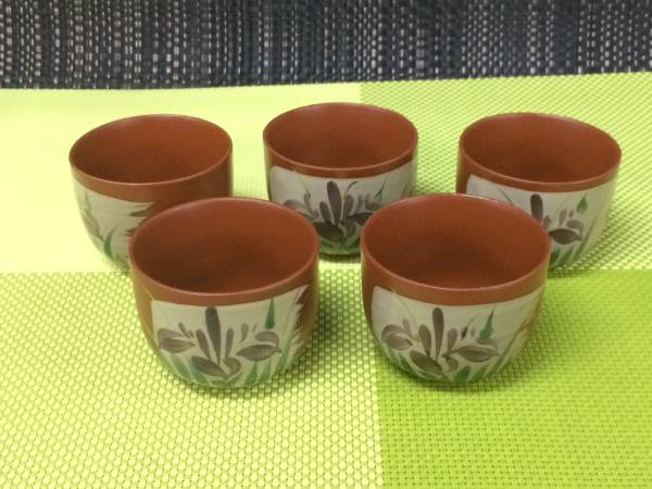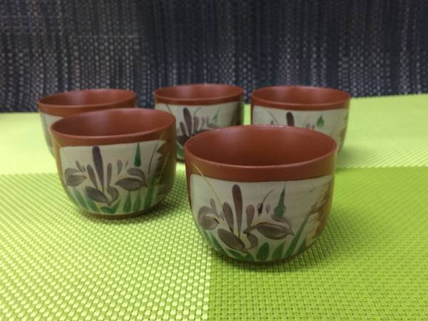 1組5個セット 6組30個迄可【即決】新品 朱泥 手描き菖蒲絵 盃 46ml