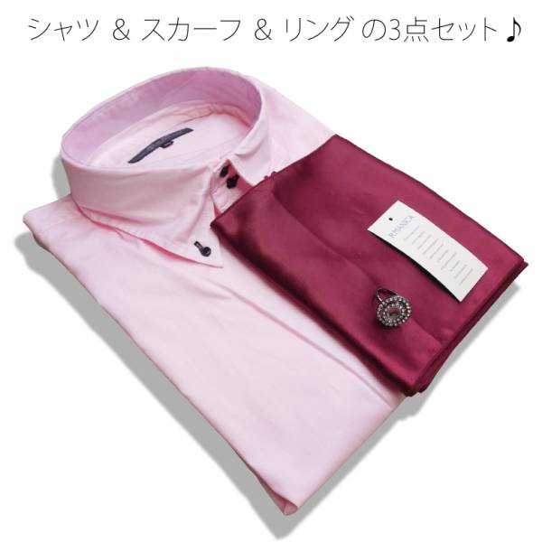 このセットで一気にドレススタイルが完成する一押しアイテム! ボタンダウンのデュエシャツにダマスク風ススタイルだけでなく、 カジュアルなど幅広いジャンルにも使える万能アイテム。 ジルコニアをふんだんに使用したリングは煌びやかでどの角度からも目立ちます! シーズンを問わないセットなのでパーティー用にはモチロン、 イベントは二次会などいつもよりワンランク上のスタイルでキメることができます! ※ストールのみの販売は致しておりません。 モデルデータ:177cm/65kg/Lサイズ着用 シャツサイズ M L LL 着丈 約70cm 約71cm 約74cm 身幅 約51cm 約52cm 約53cm 肩幅 約43cm 約45cm 約46cm 袖丈 約62cm 約63cm 約64cm ストールサイズ FREE 横(最長) 約115cm 横(最短) 約80cm 縦 約16cm ※上記表は実寸サイズとなります。 |