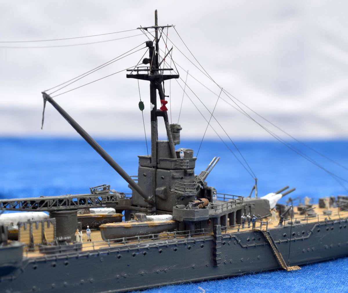 艦橋は、インジェクションの関係で再現されていない窓を開口。香取型の特徴として、正面の測距儀の下、おそらく操舵室の窓が中心だけ一つ大きくなっています。