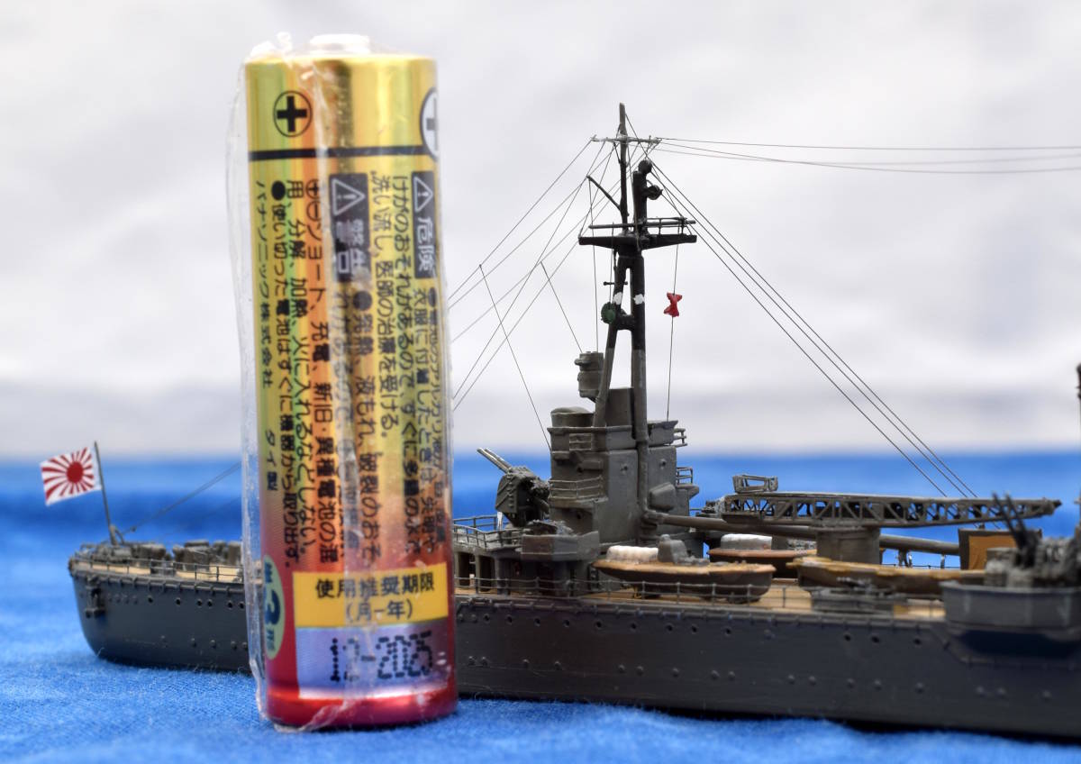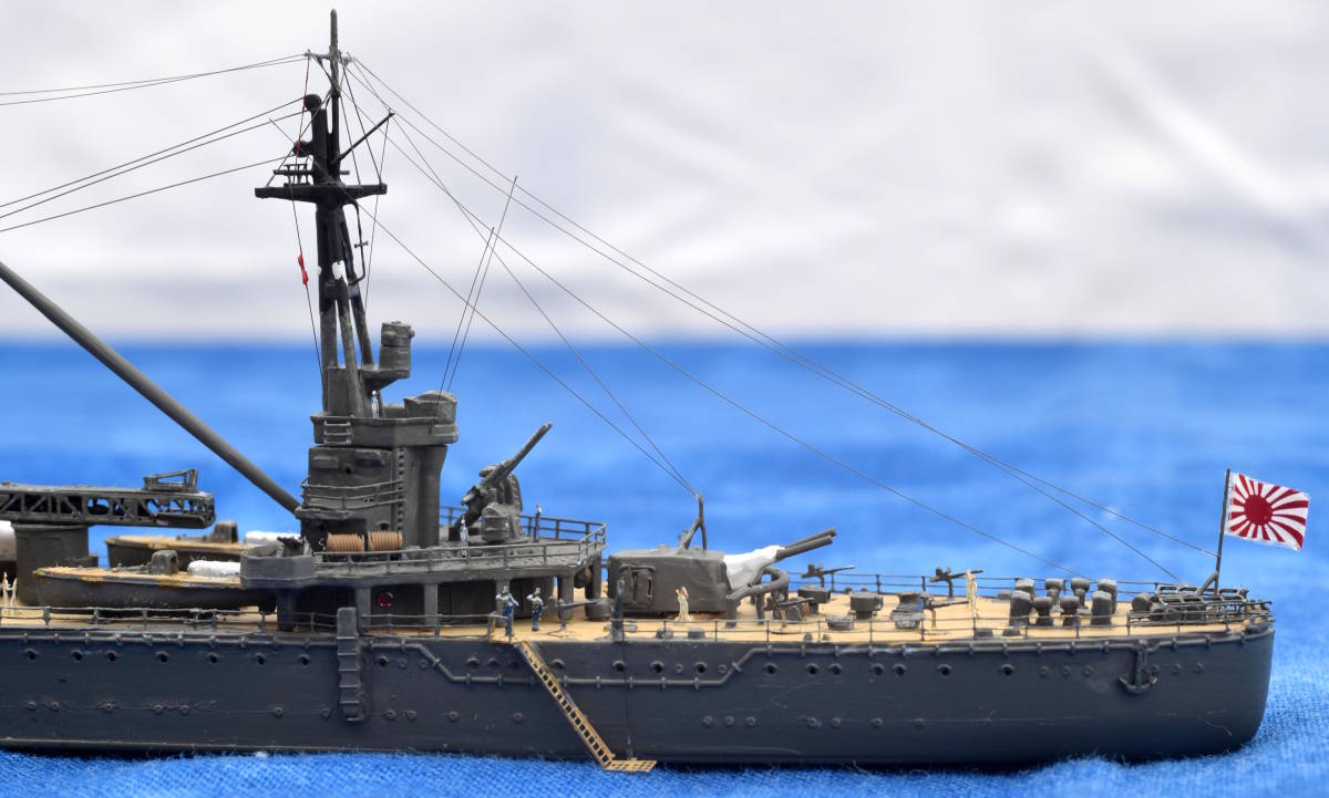 今回は停泊状態と航行状態の二隻をこさえましたので、どちらか一隻をお譲りいたします。艦種に日の丸の旗を掲げていて、舷門が出ているほうが停泊状態です。