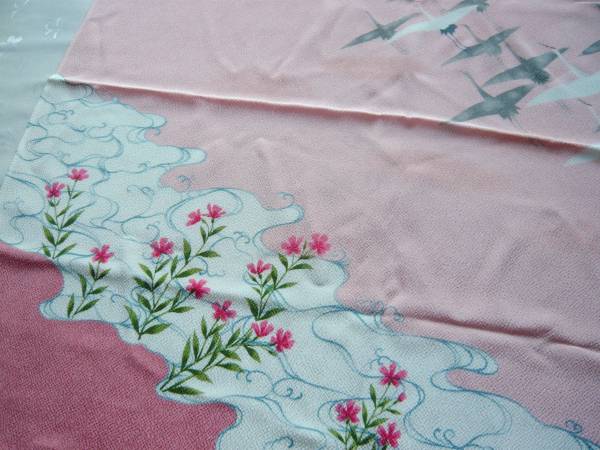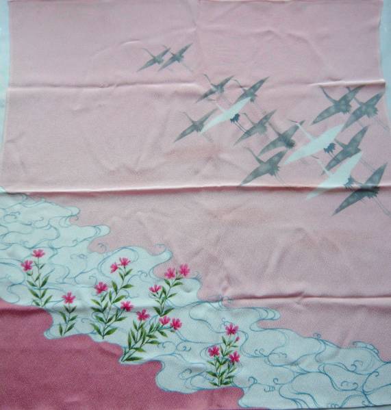 USED美品★風呂敷★ふじみやび化合繊ふろしき ★ピンク色鶴★和柄186 |
