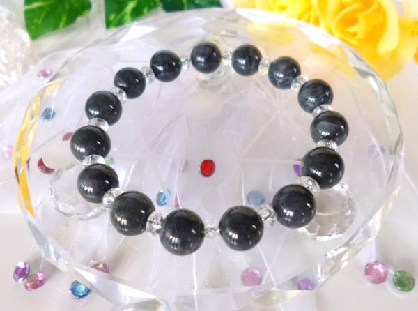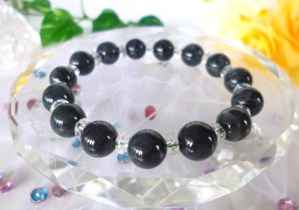 ★奇跡☆魔法★不老長寿☆五徳の石★黒翡翠☆ヒスイ★ひすい★ジェダイト♪ ★10mm★ ★17cm★