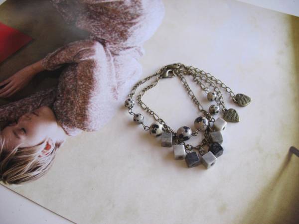 シベールの宝石箱・・シリーズです♪私的・スタイル・・キュートなジャスパーやダルメシアン、ターコイズのブレスレット3本セットです♪個性的な素材を集め てニューヨークテイストなデザインです♪色々な組み合わせや単品でも楽しんでいただけます♪ダルメシアンは6ミリ、8ミリの丸玉、ジャスパーは7ミリの キューブです♪ターコイズは10ミリ位です♪ダルメシアンのブレスレットは16センチ+アジャスター6センチで全長22センチ位です♪ ジャスパーのブレスレットは16センチ+アジャスター6センチで全長22センチ位です♪ターコイズのブレスレットは16センチ+アジャスパー6センチで全長22センチ位です♪お揃いのネックレスやピアスも出品しています♪ハンドメイドをご理解頂いてノークレーム、ノーリターンでお願いします