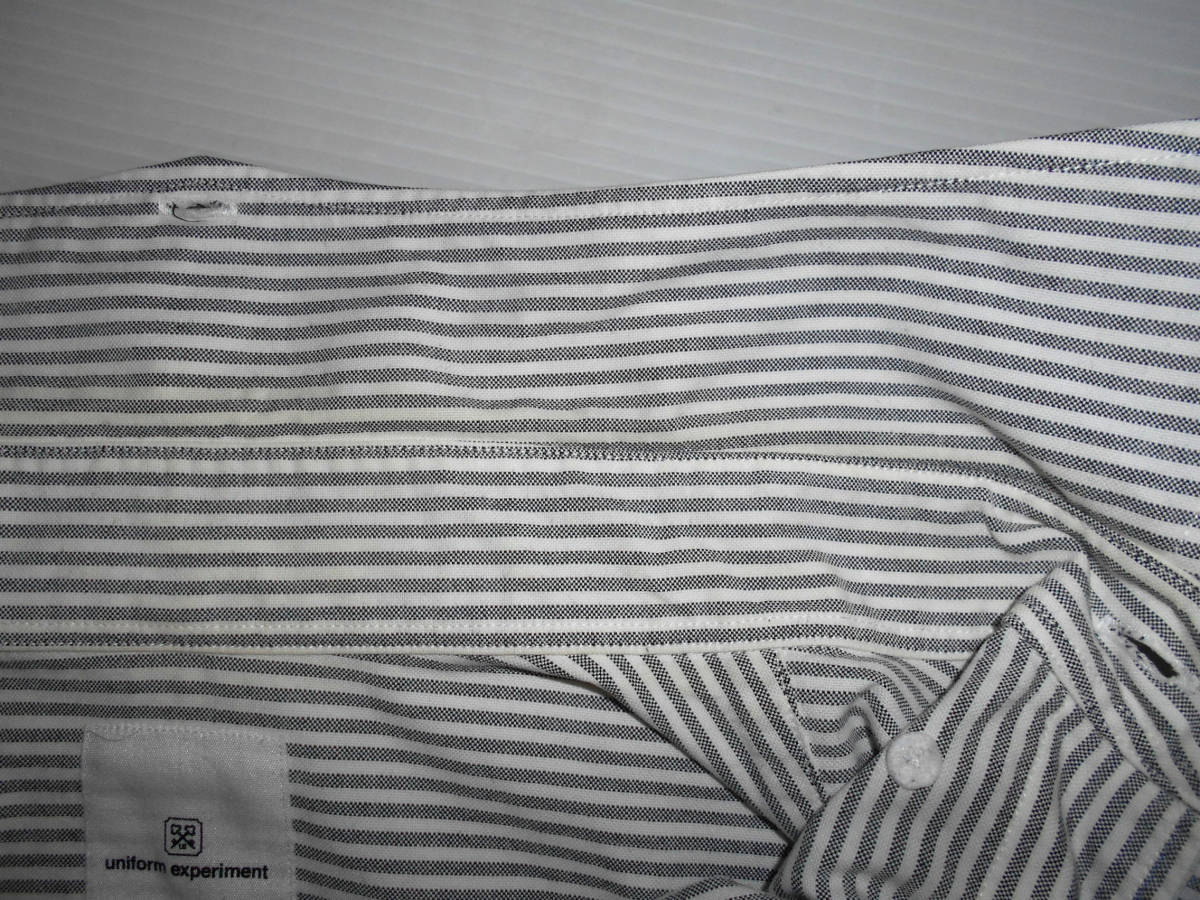 ユニフォームエクスペリメント(uniform experiment)ソフ 長袖ストライプシャツです。(有)ソフ 日本製の正規品です。素材はコットン100です。フロントはボタンとスナップ釦留めです。