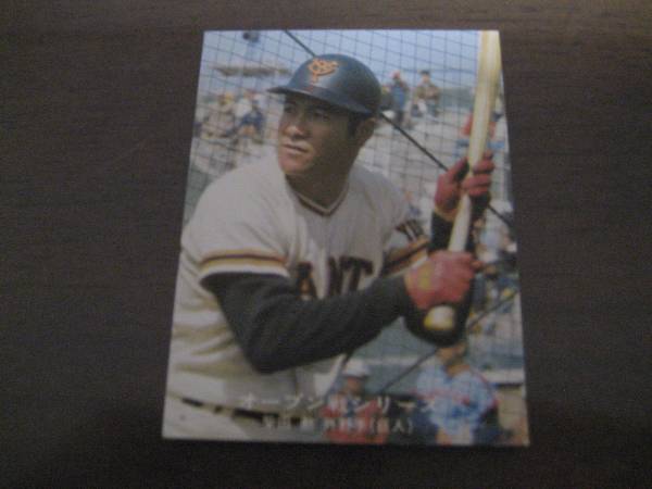| ■カルビー1977年/黒版/No198/オープン戦シリーズNo54/柴田勲 | ||