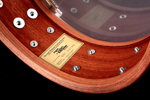 商品の説明 | AAAAランクのバーズアイ・マホガニー材をエクステリアに。シェル本体構成はマホガニーを採用したオールマホガニーシェル。またレインフォースメントは6ミリ厚,4plyのマホガニー材が取り付けられております。