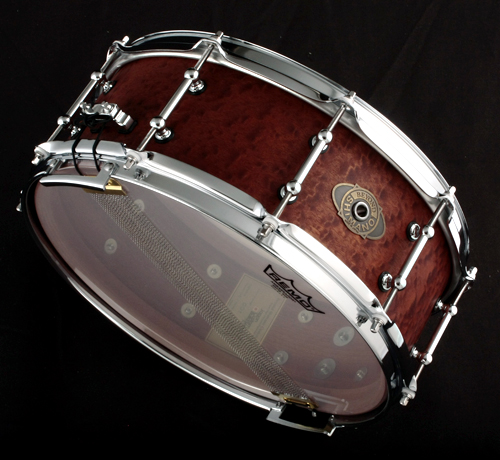 ビヨンド工房にてシェル作成から全てをハンドクラフトされるJP Custom Build シリーズです。材は全て硬質合板のプライ にて作成されるシェルは通常の合板には出せないひとつ上の高音域がでてます。これがマホガニーシェル?と思う硬質なトーンニュアンスが硬質合板の特徴です。サイズは14 x 51/2 幅広いジャンルに対応するキレとシャープさが備わった一級品です。非常に綺麗なトーンとパワフルなサウンドです。お勧めです。JCB シリーズの素材は全てSuper High Press Plywood Material(硬質合板製) にて成型しておりますので、従来のドラム合板では期待できない硬質材特有の一つ上の周波数、ピッチが期待していただけます。 心地よい抜けフルパワーで叩かなくても、そのサウンドニュアンスが期待できます。