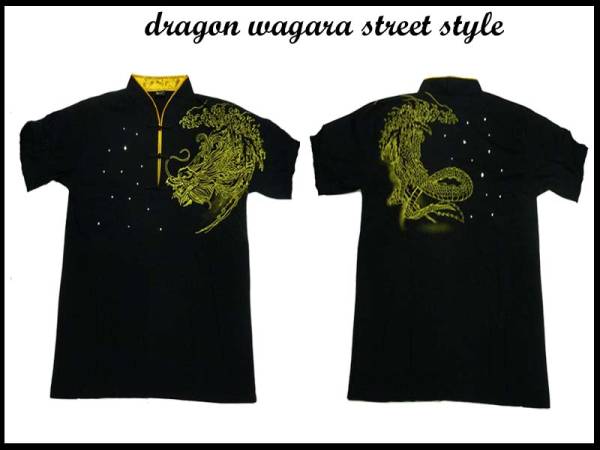 新品 ドラゴン和柄 スタイル ストリート シャツ D8(L) 黒