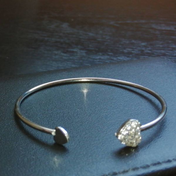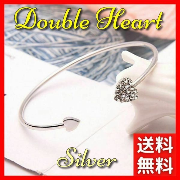 ブレスレット ダブルハート シルバー 新ファッション 光沢のある 調節可能なクリスタル ダブルハート 弓 カフ オープニング 女性 #C11-2