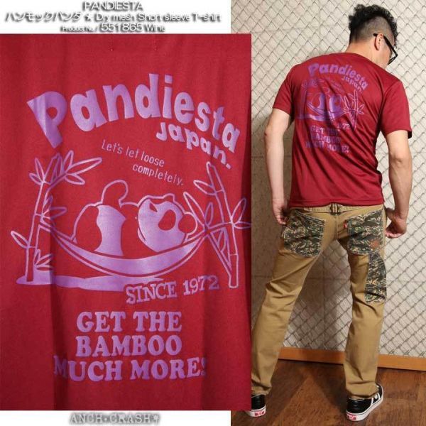 PANDIESTA パンディエスタ ドライメッシュTシャツ ワイン【XXLサイズ】551865 吸汗速乾 半袖Tシャツ パンダ