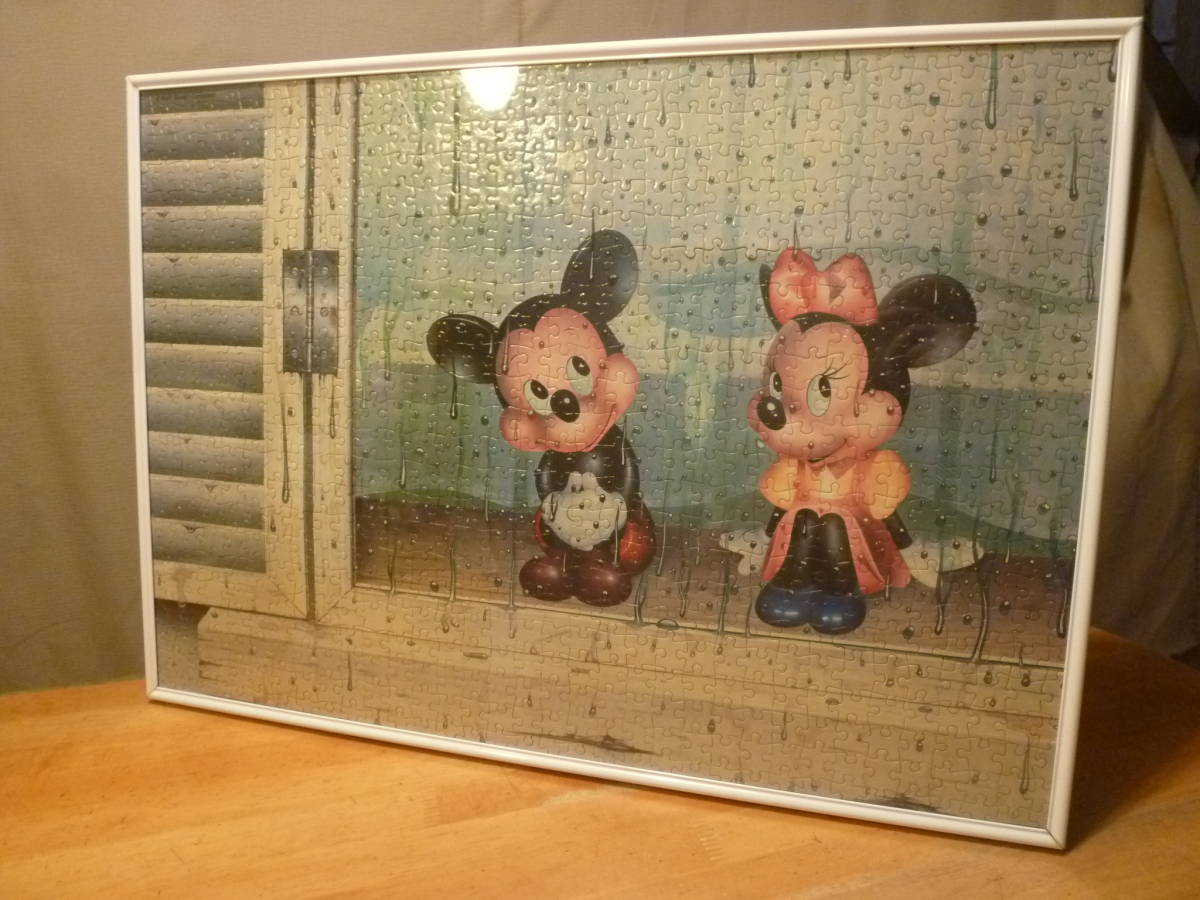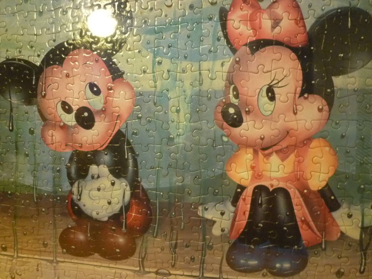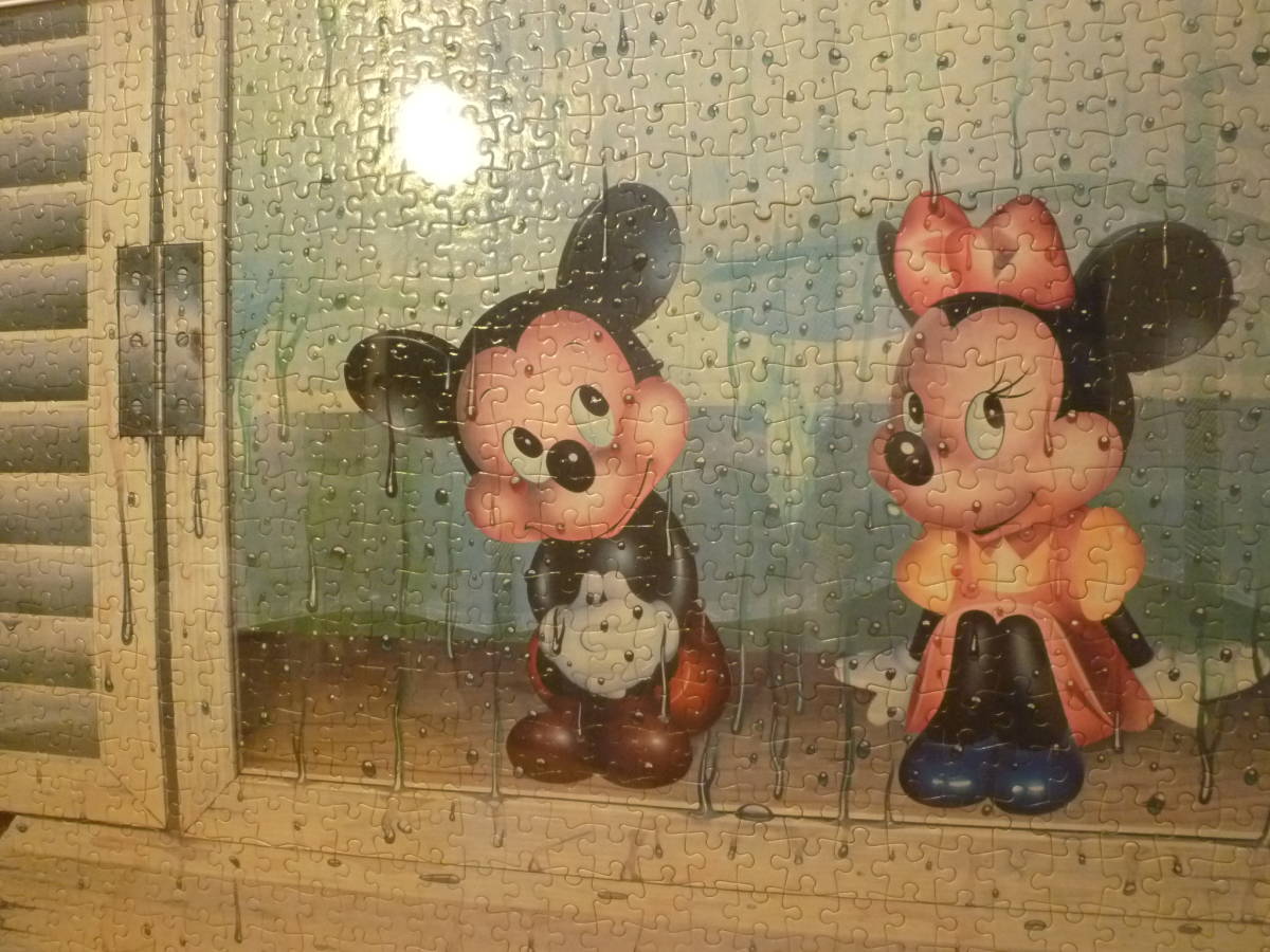 こちらは皆が大好きなディズニーで、その古風な感じのするミニーとミッキー?のジグソーパズルの様ですが、ベビーミッキー達なのかははっきりしません。雨のしずくがかなり激しくガラス窓に流れる風景を不思議?そうに楽しそうにしゃがんで眺めている風情が愛らしいです。出来上がり品でピース数等もはっきりしません。