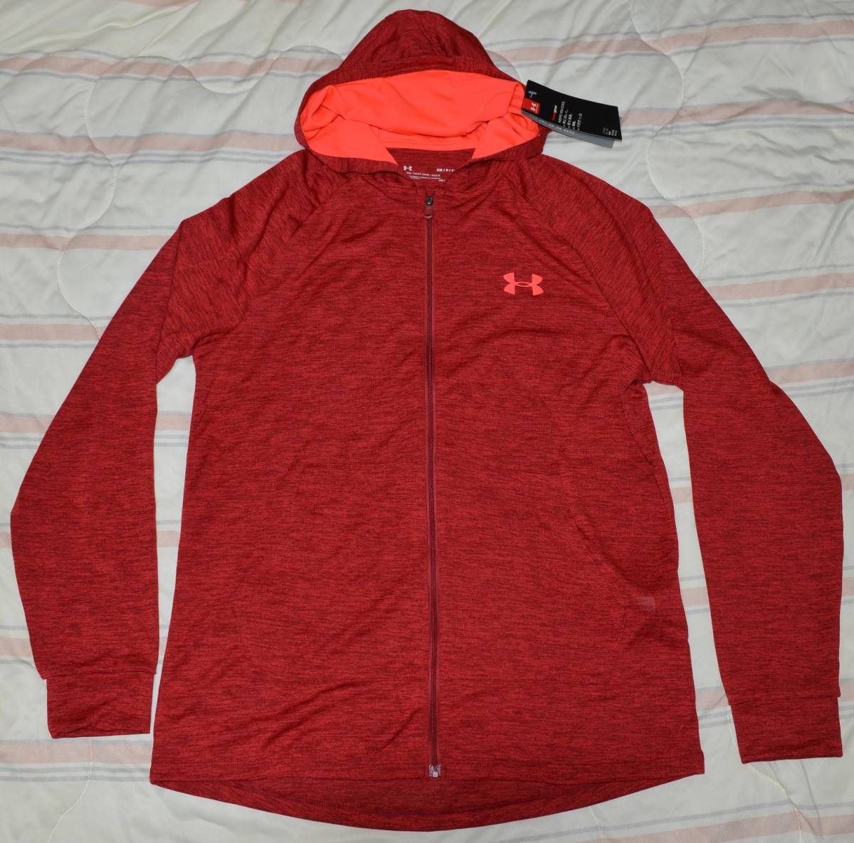 12【新品タグ付】*UNDER ARMOUR アンダーアーマー UAテック フルジップ フーディー メンズ SM 赤系 定価5445円 送料無料