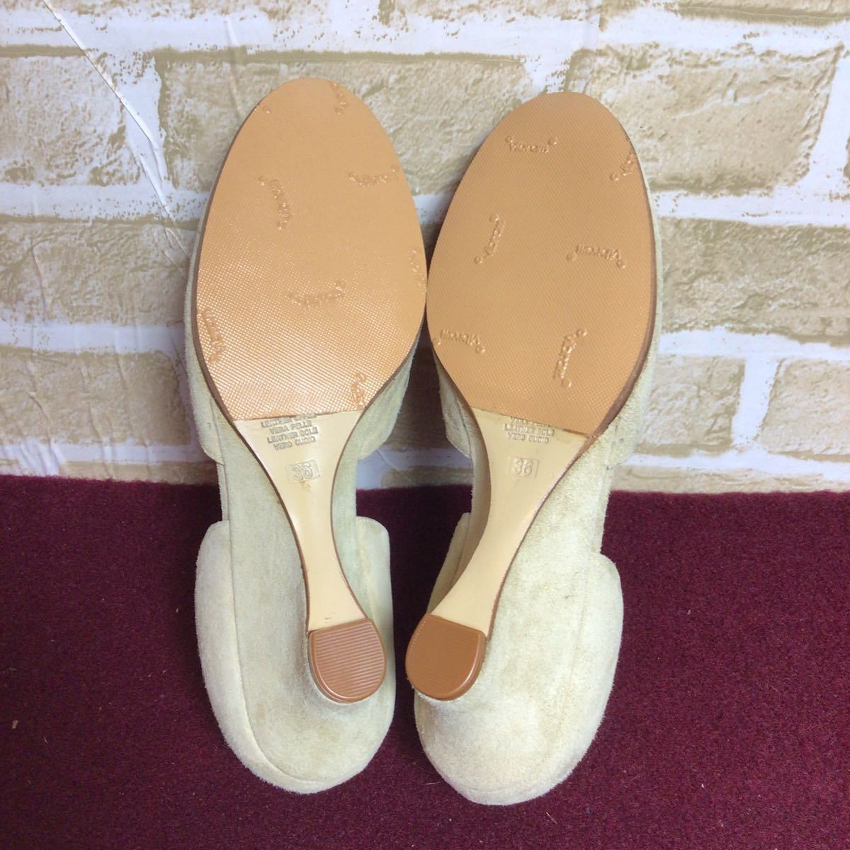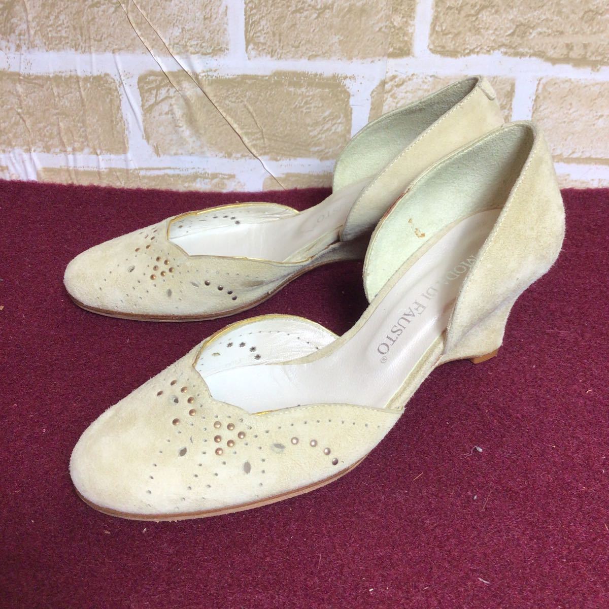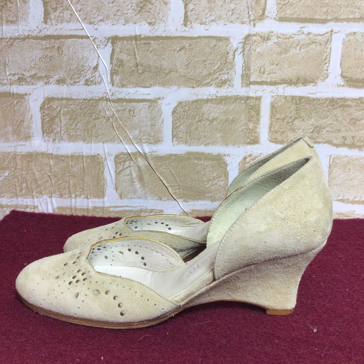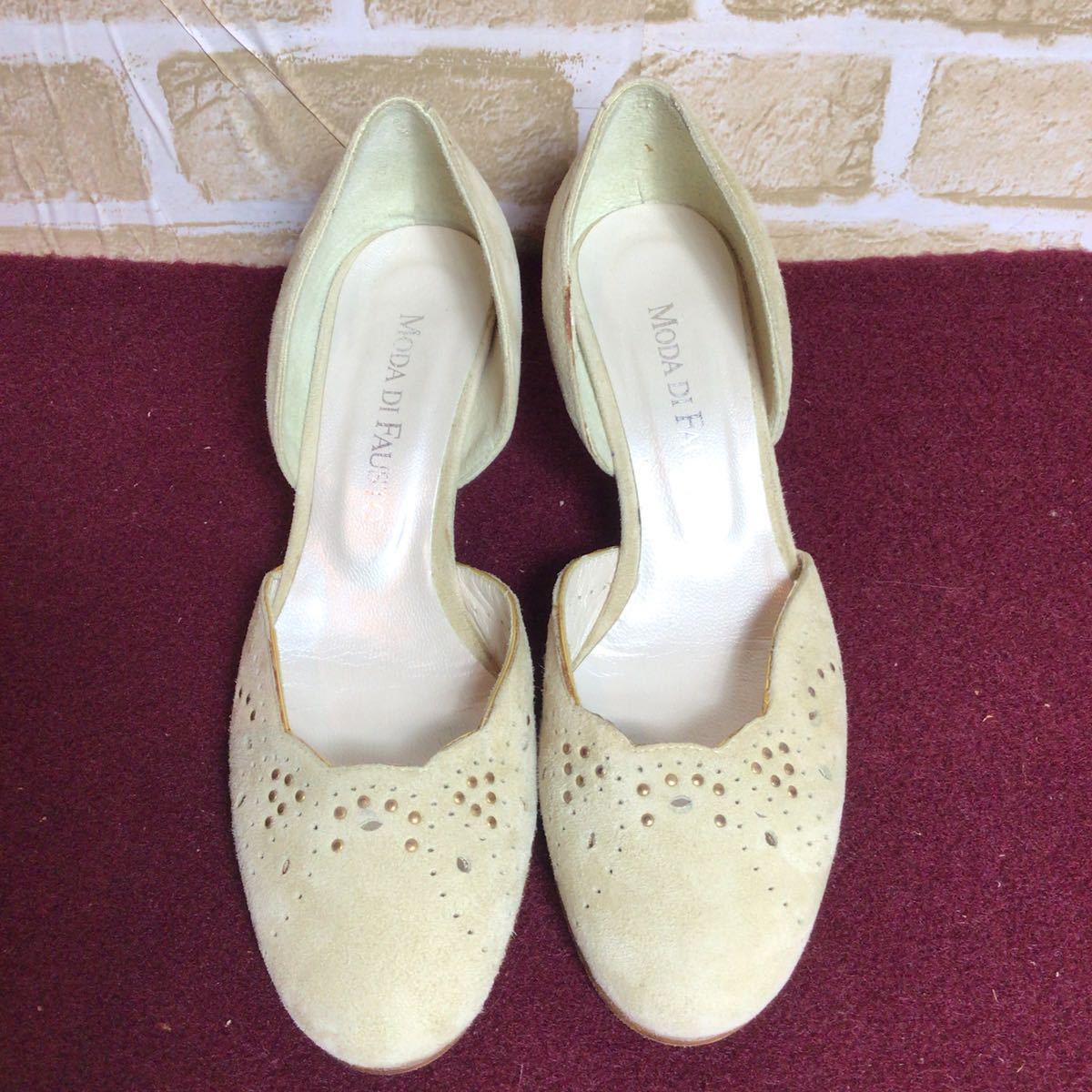 【売り切り!送料無料!】A-122 MODA DI FAUSTO!セパレートパンプス!ベージュ!36 23.0cm!ウェッジソール!スエード!イタリア製!未使用に近い!
