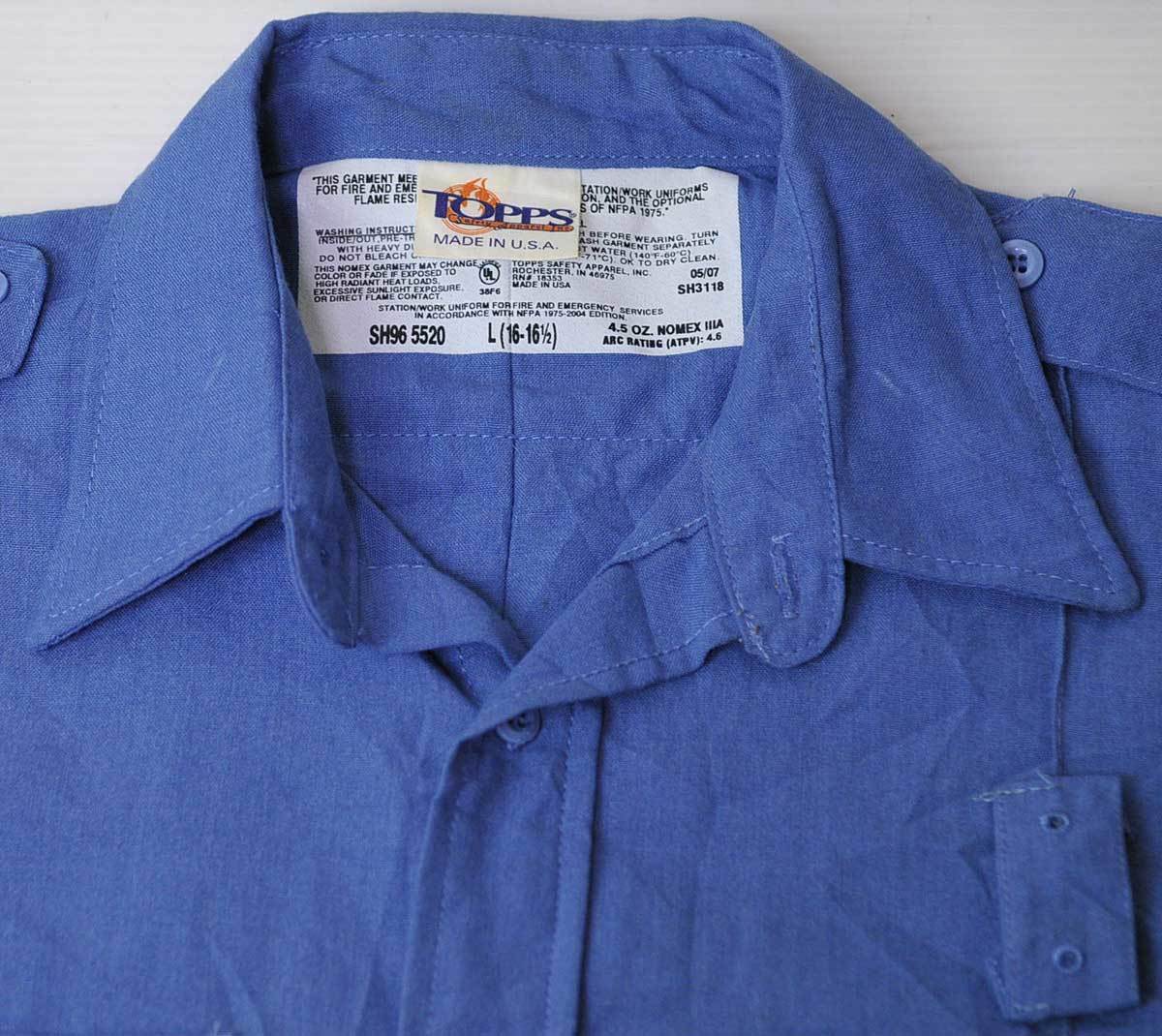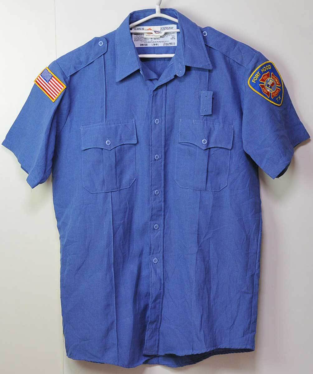古着●アメリカ消防/レスキュー/飛行機消防 半袖シャツ フォート フッド陸軍基地 L 16-16.5 左胸ポケット汚れ・バッジ付け半分糸ほどけ xwp
