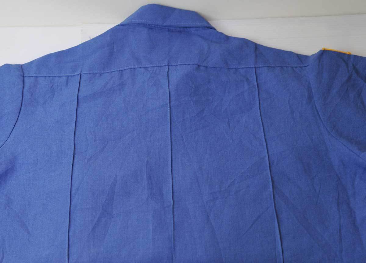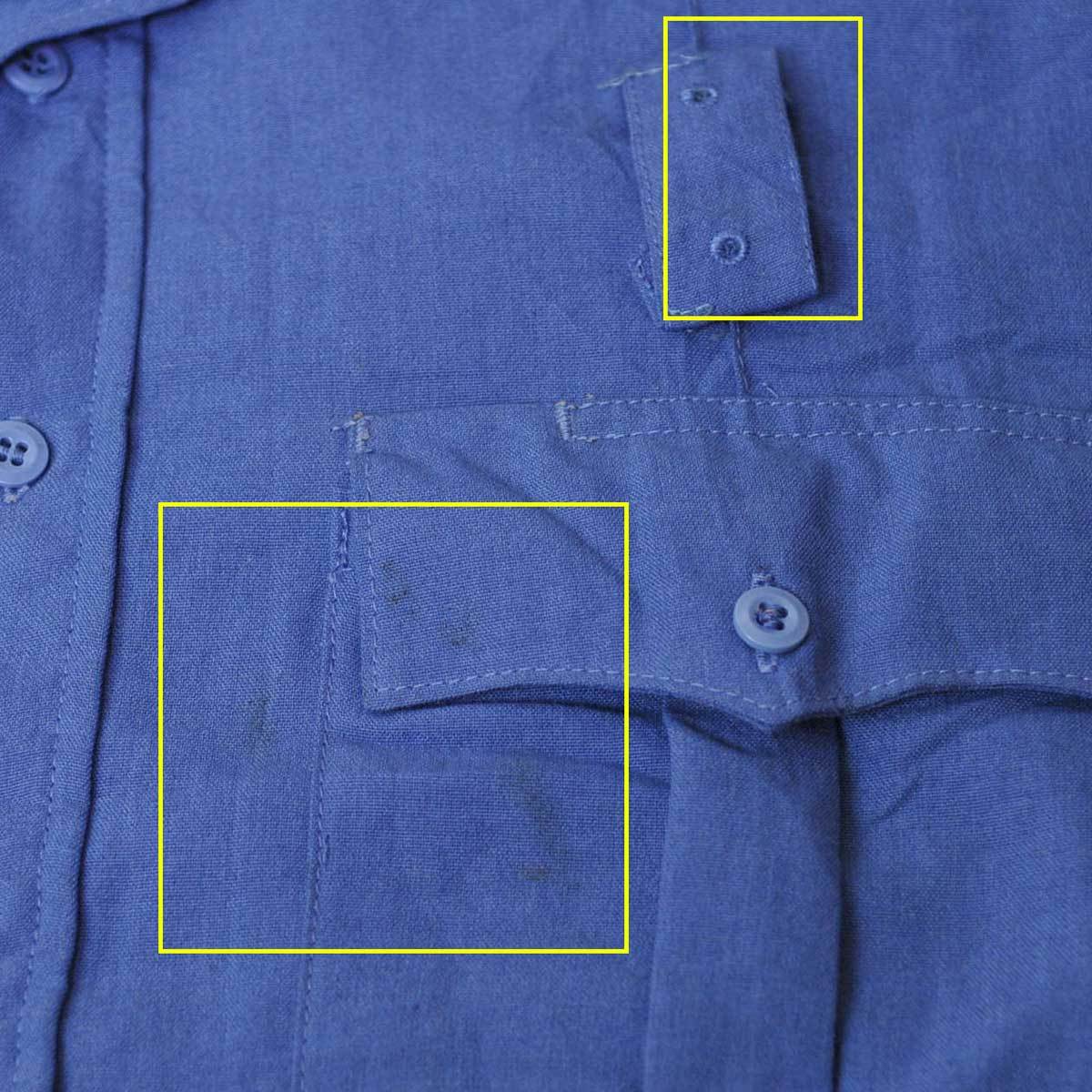 ・左胸ポケット上部のバッジ付けが袖側の半分ほど糸ほどけ。