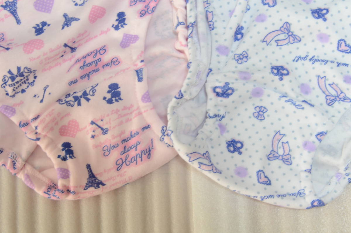 『送料無料』★ティーンズ 女児 160 インゴムショーツ★2枚組★エッフェル塔/リボン柄★白×ピンク★