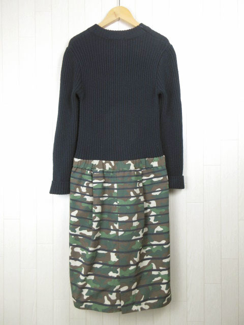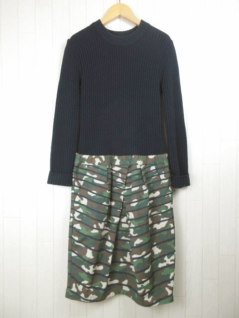 【ビーミングライフストアバイビームス B:MING LIFE STORE by BEAMS】 ワンピース 切替 ニット 長袖 迷彩柄 カモフラ ネイビー グリーン S 秋冬 | |