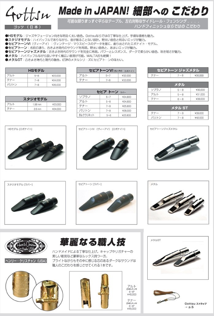 ■ HSモデルNew ! *エボナイト製:ジャズやフュージョン向きな明るく太い音色。Gottsuならでは丁寧な仕上げながらも手頃な価格が魅力です。