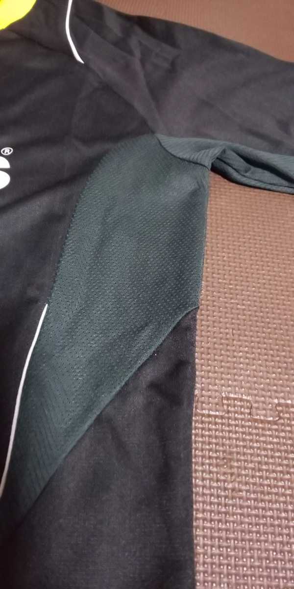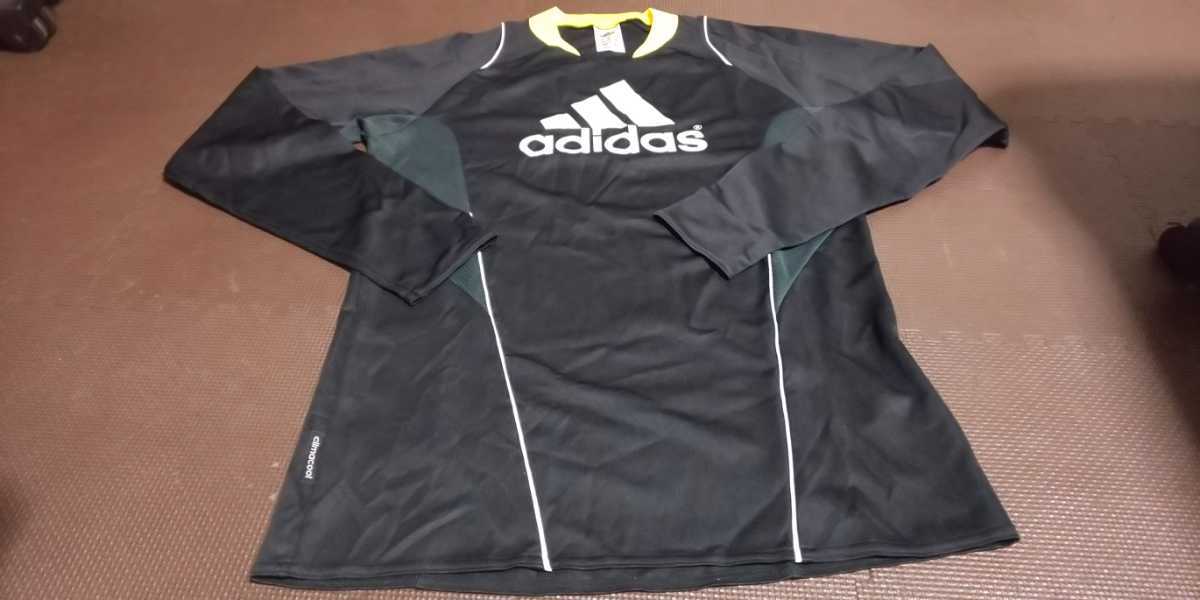 美品adidas黒、モスグリーン、ロゴ白、黄色ストレッチトップス