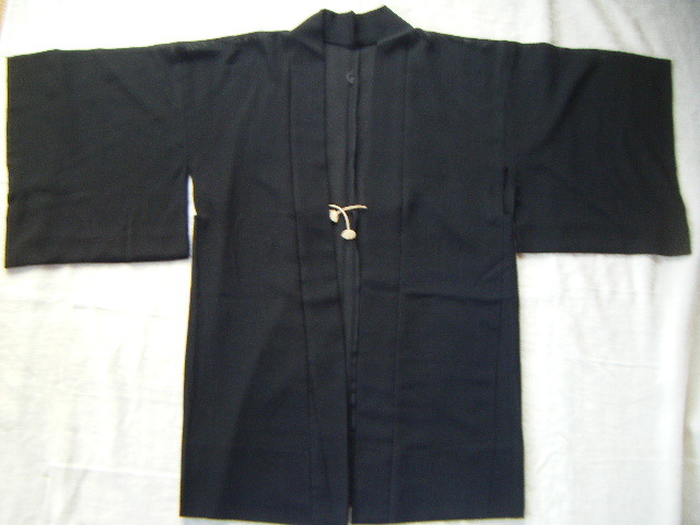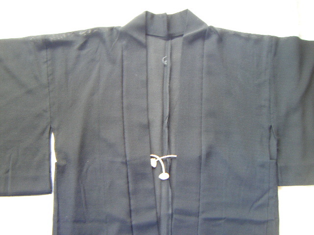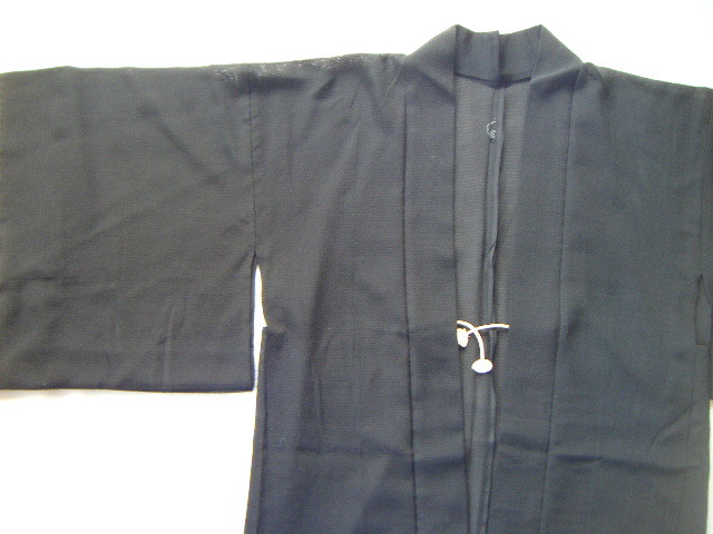 単衣羽織(裏地なし/透け感有り)*20年以上前のもの*黒*後ろ身頃の衿下と両袖に紋*未使用と思います     T