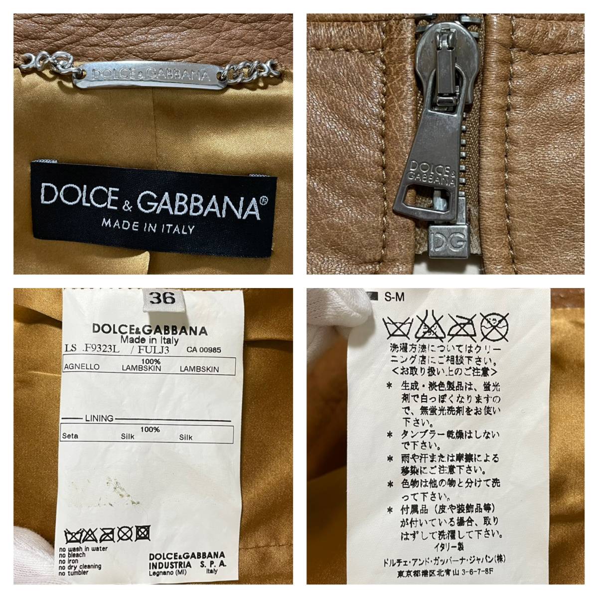 本物 ドルチェ&ガッバーナ ジップアップ レザー ジャケット 36 キャメル系 ドルガバ DOLCE&GABBANA | |||