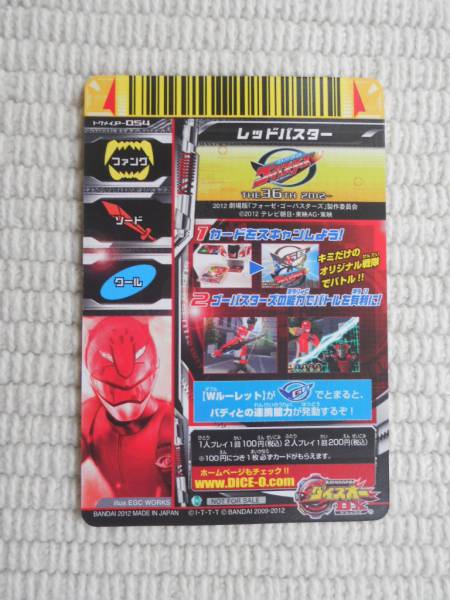 商品は、 映画 仮面ライダーフォーゼ THE MOVIE みんなで宇宙キターッ! 入場者特典 データカードダス スーパー戦隊バトル ダイスオーDX PRカード 特命戦隊ゴーバスターズ レッドバスター になります。