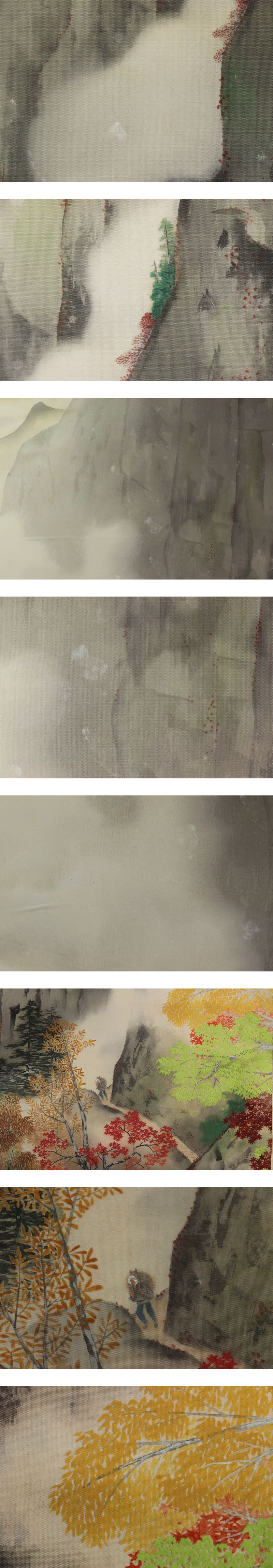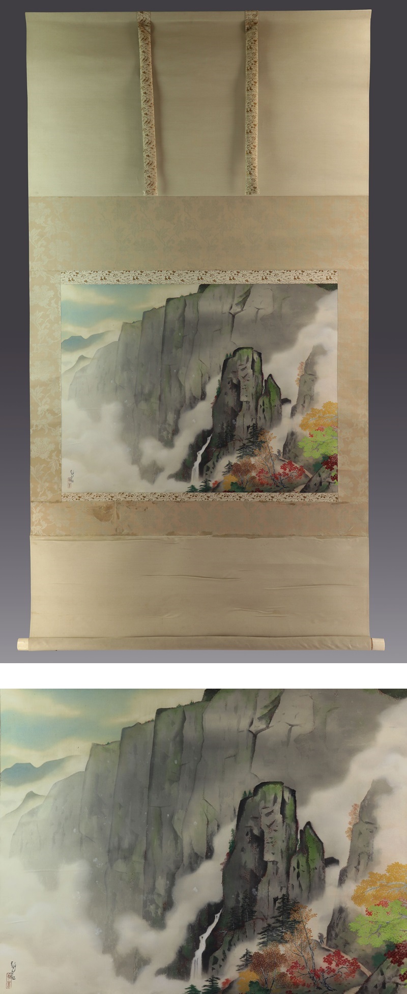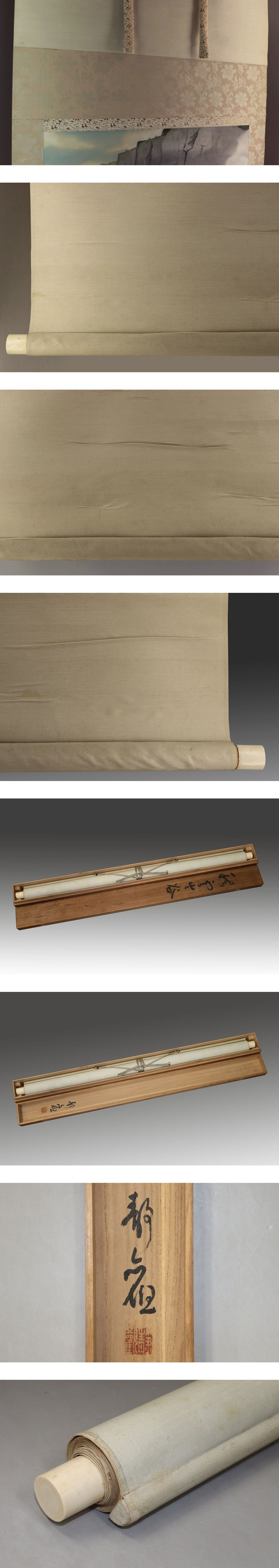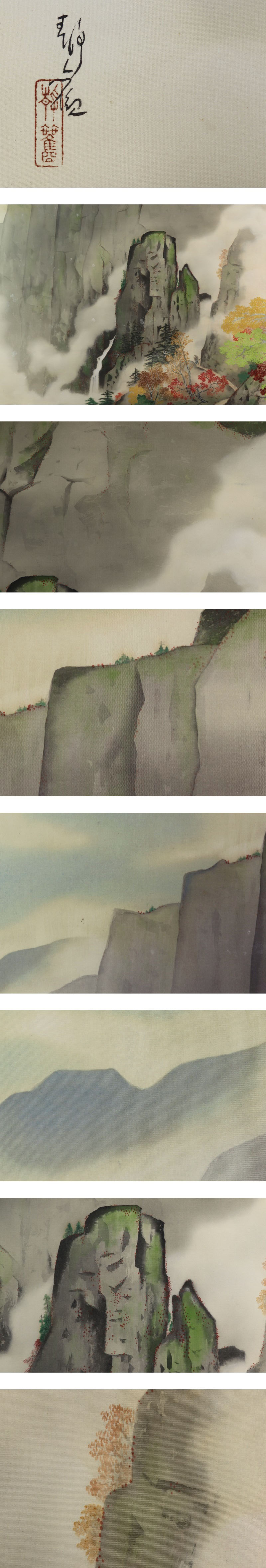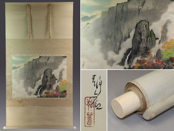 | №2007053 希少【真作】綱島静観【大幅・秋雲岩谷】◆絹本◆共箱◆掛軸 | |