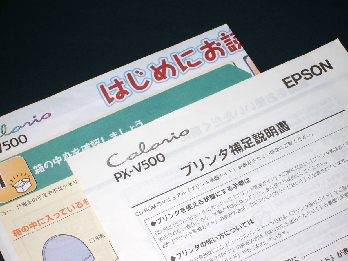 ◇落札後の流れについて 【単品取引(落札1点のみ)の場合】 こちらからの連絡を待たずに 『取引情報の入力』を行い『支払い手続き』を完了させてください。 折り返し発送詳細をお伝えします。 【まとめて取引の場合(複数点落札後)】 [まとめて取引をはじめる]ボタンを押し 『取引メッセージ』よりご希望の発送方法を知らせください。 折り返し送料をお知らせします(可能な限り同梱します)。 【まとめて取引の場合(後日入札予定がある場合)】 [取引をはじめる]ボタンを押さずに 『取引メッセージ』よりご予定をお知らせください。 ~~~~~~~~~~~~~~~~~~~~~~~~~~~~~~~~~~~~~ ↓ここから【商品説明】です ◆エプソンプリンタ PX-V500用 マニュアル&CD 3点set のお取引です。 ◆取説およびCDは比較的綺麗な状態ですが、一箇所書き込みがあります。 ◆発送は基本的に入金終了時から24時間を目安に行います。 ◆お急ぎの方は予め質問欄にて納期をお問い合わせの上、ご入札願います。 また、タイミングによっては早期終了可能な場合があります。 ◆出張のため留守にすることがありますので 下記の「自己紹介」のページをご覧になってください。 target=_blank>https://user.auctions.yahoo.co.jp/jp/show/aboutme?userID=nice_shot_sada | ||||
