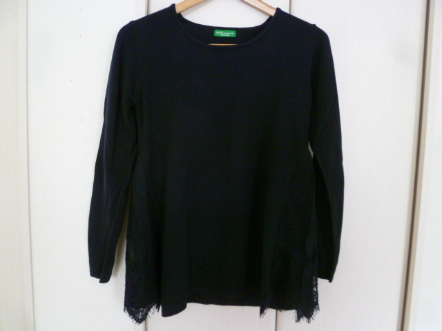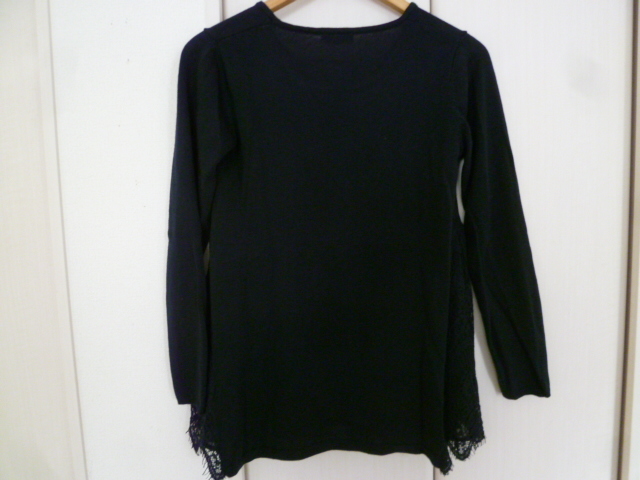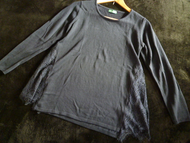 earth music&ecology/アースミュージック&エコロジー○紺両サイドレースデザインフレアーニットセーターF/ネイビー長袖○⑥ST1022