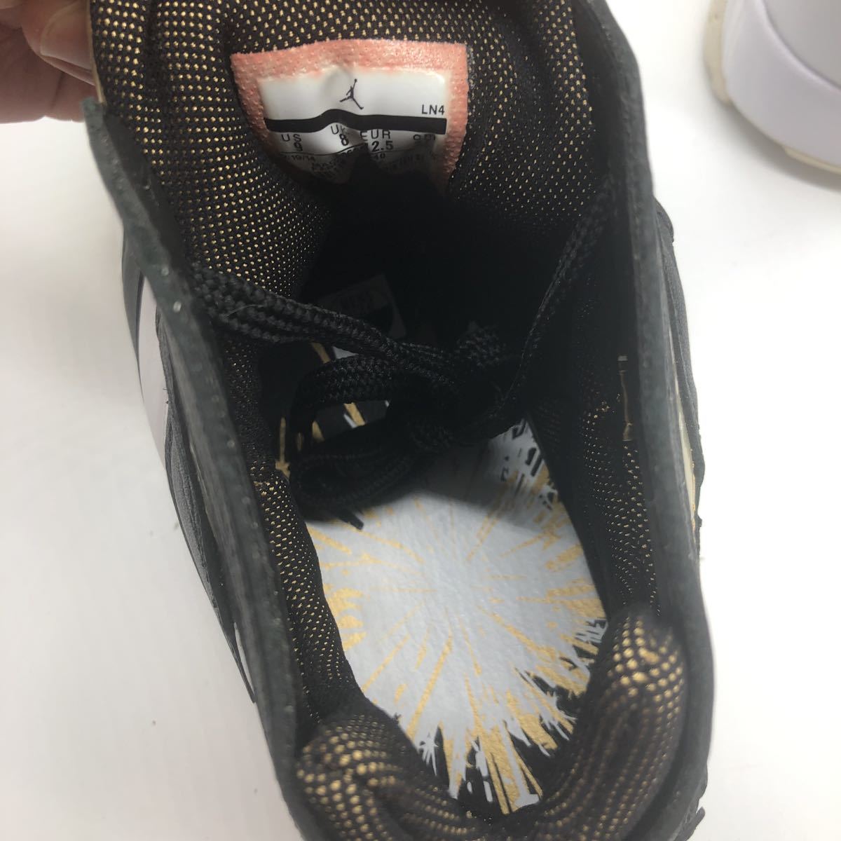 こちらのモデルは2014年に発売されたAIR JORDAN6(384664-350)に続いてマイケル・ジョーダンのNBA初制覇から23周年を記念したモデルです。アッパー全体をチャンピオンになった後、ロッカールームでのシャンパンファイト時に配られたMot & Chandonの瓶をイメージして白×黒×金を採用し、シューストッパーはチャンピオンリングをイメージしてデザインされています。