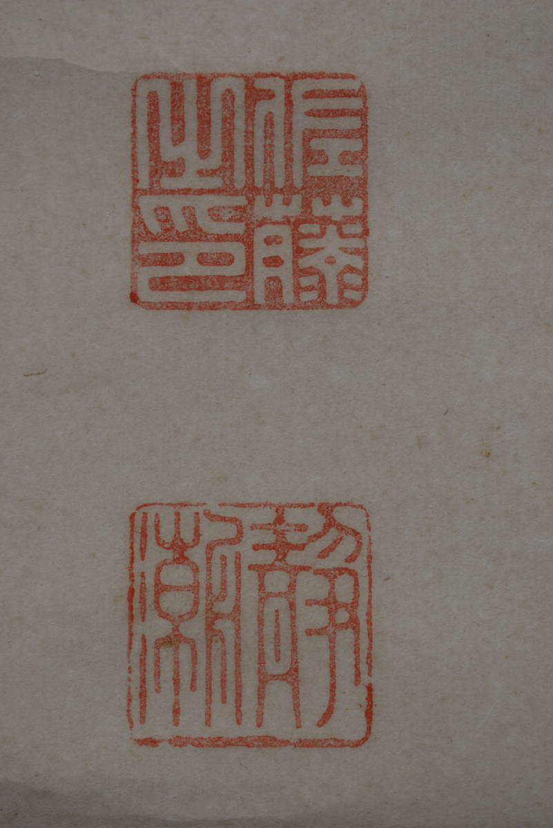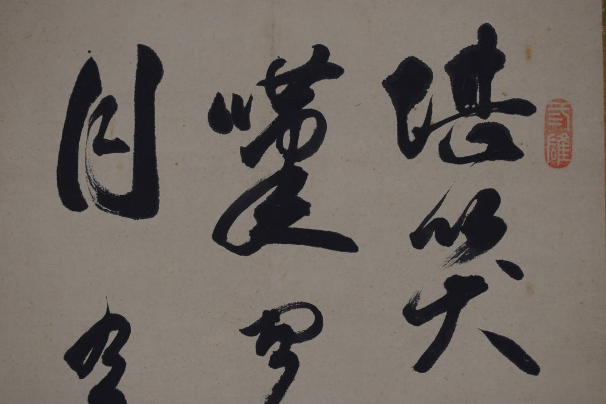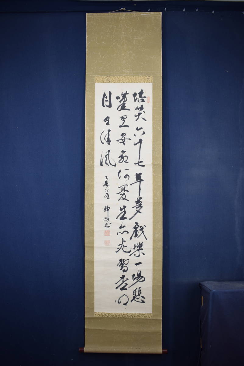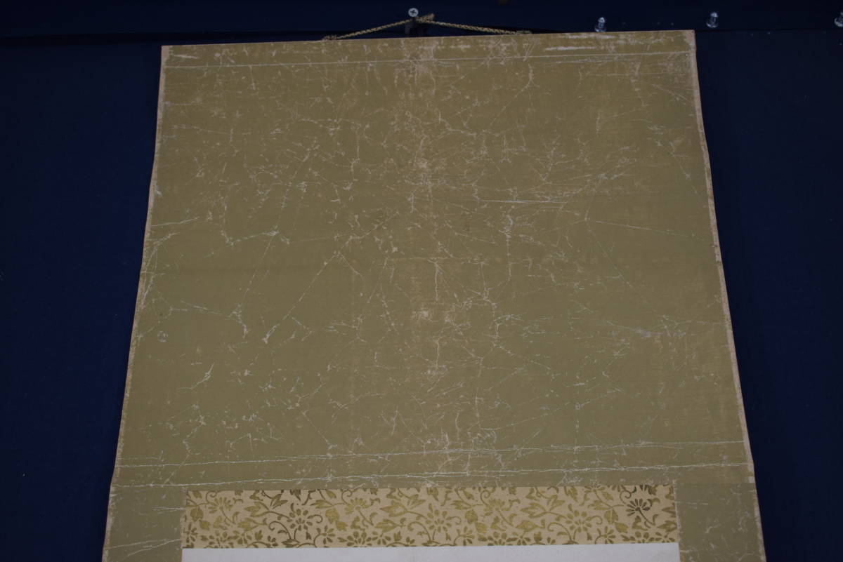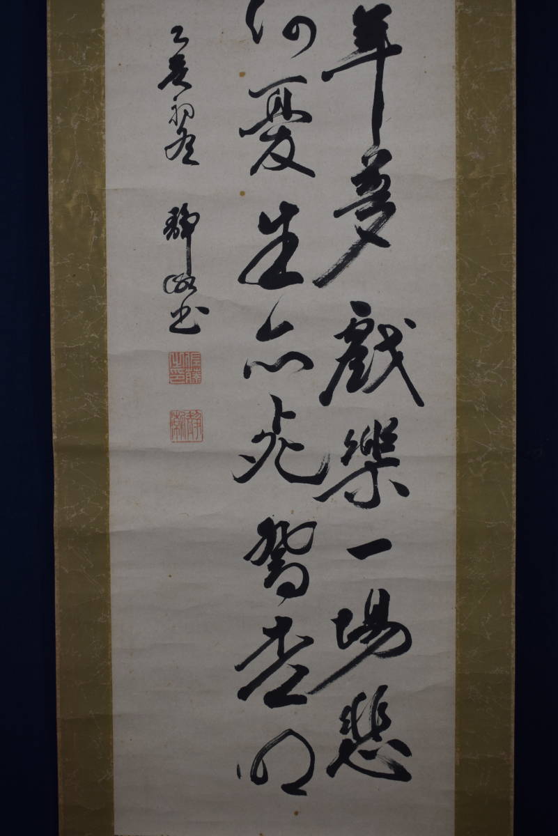 【作品状態】 本紙は紙本肉筆です。本紙は薄汚れ、汚れシミあります。表装は紙表装で、多少の時代感、折れ、巻シワあります。