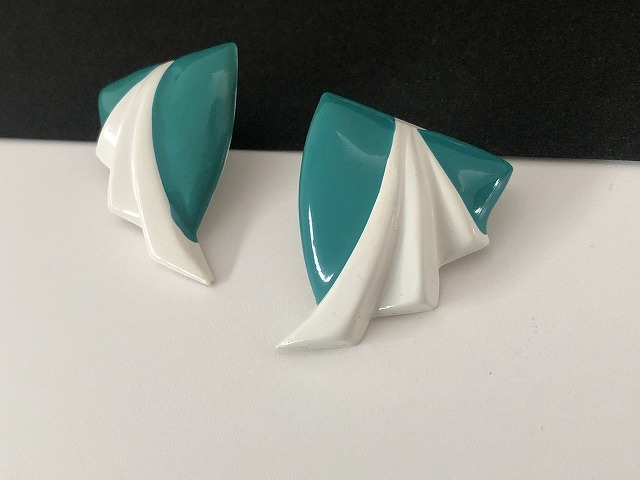 グリーン ホワイト エナメルカラー ピアス USA [ap-118]ヴィンテージ