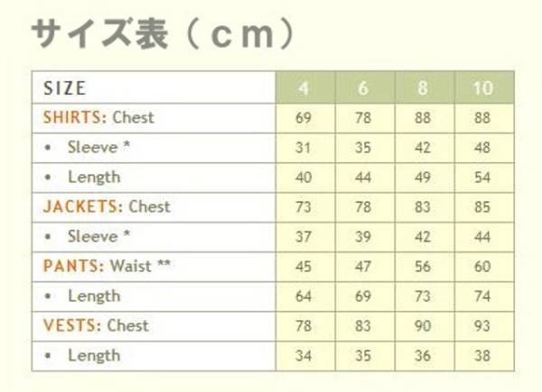 商品説明 | 本格的な子供用タキシードです! 結婚式、フォーマルなパーティーにいかがですか!お子様を小さな紳士にされてみては! おおよそのサイズ サイズ1 (60-70cm) サイズ2 (70-80cm) サイズ3 (80-95cm) サイズ4 (100-110cm) サイズ6 (110-120cm) サイズ8 (120-130cm) サイズ10(130-140cm) もちろん新品です! 質問等ございましたら、お気軽にどうぞ! 宜しくお願いします!! | |