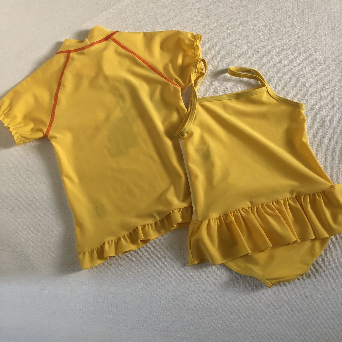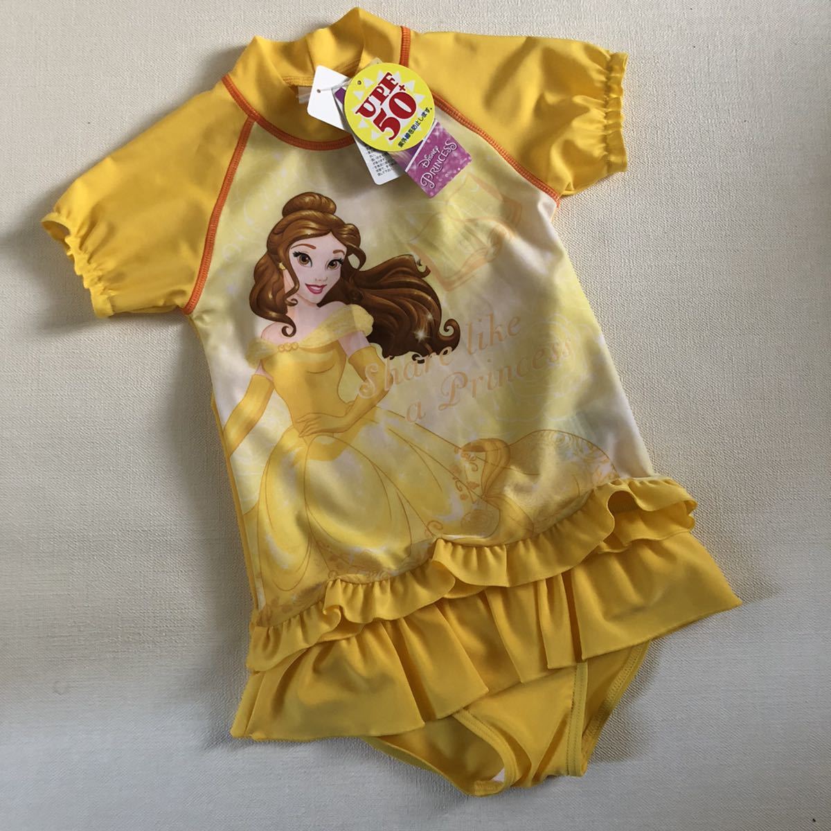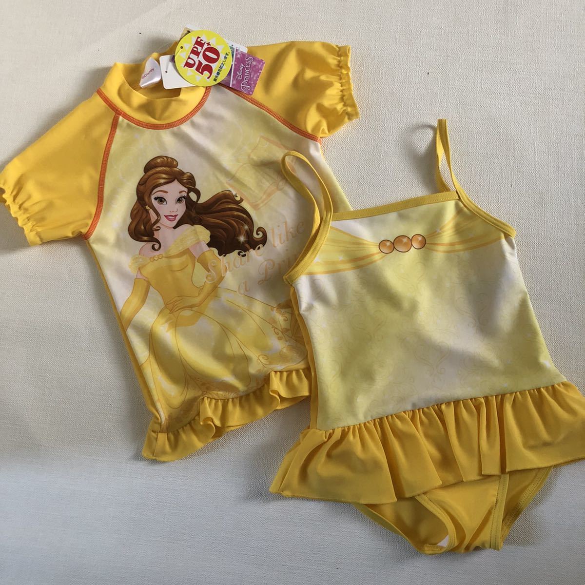 新品 タグ付き【ベル】 95 ディズニー 美女と野獣 ラッシュガード&ワンピース 水着 2点セット
