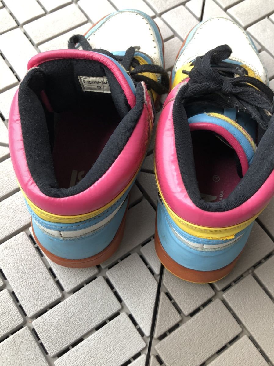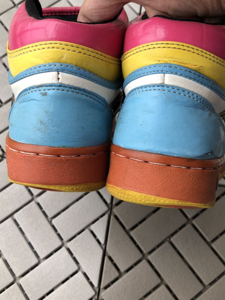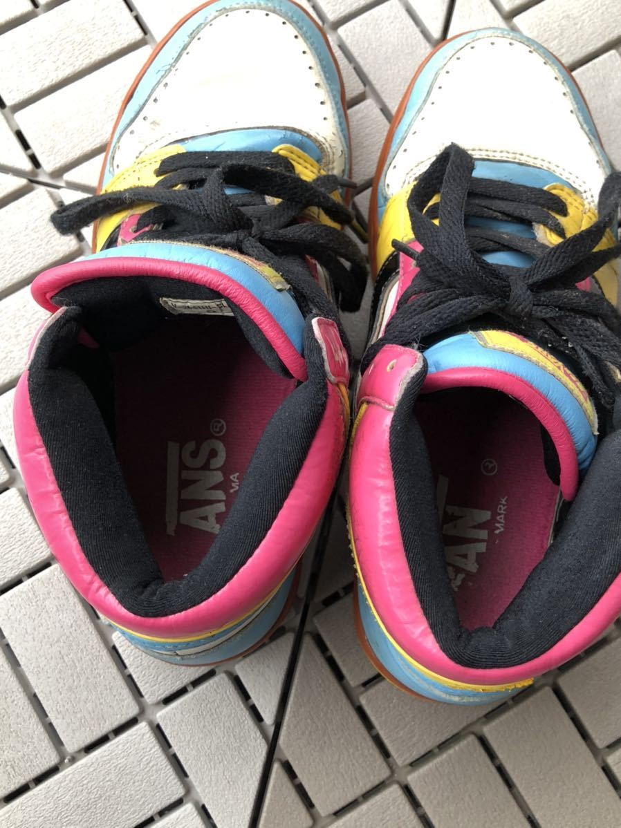 左内側のハイカット部に擦れ傷がありますが、剥がれであり、破れではありません。
