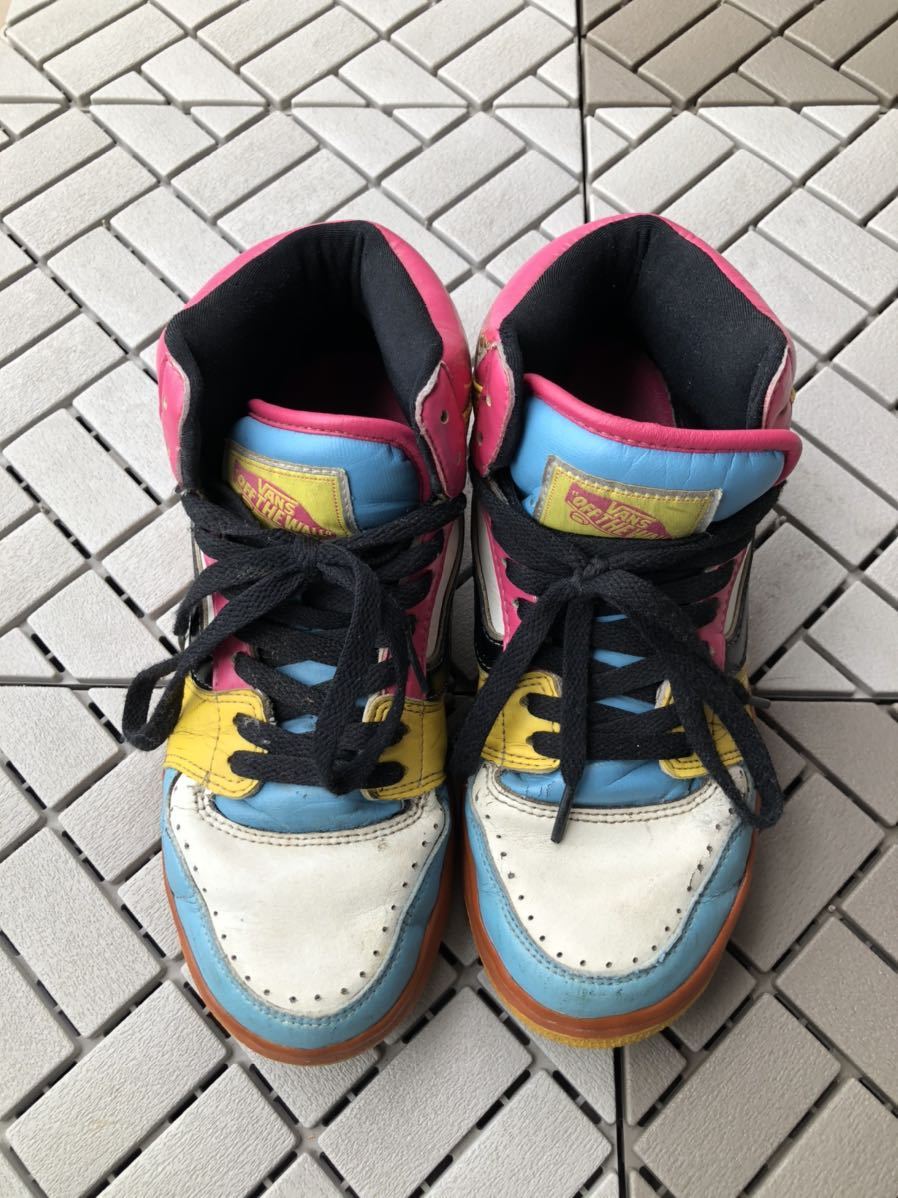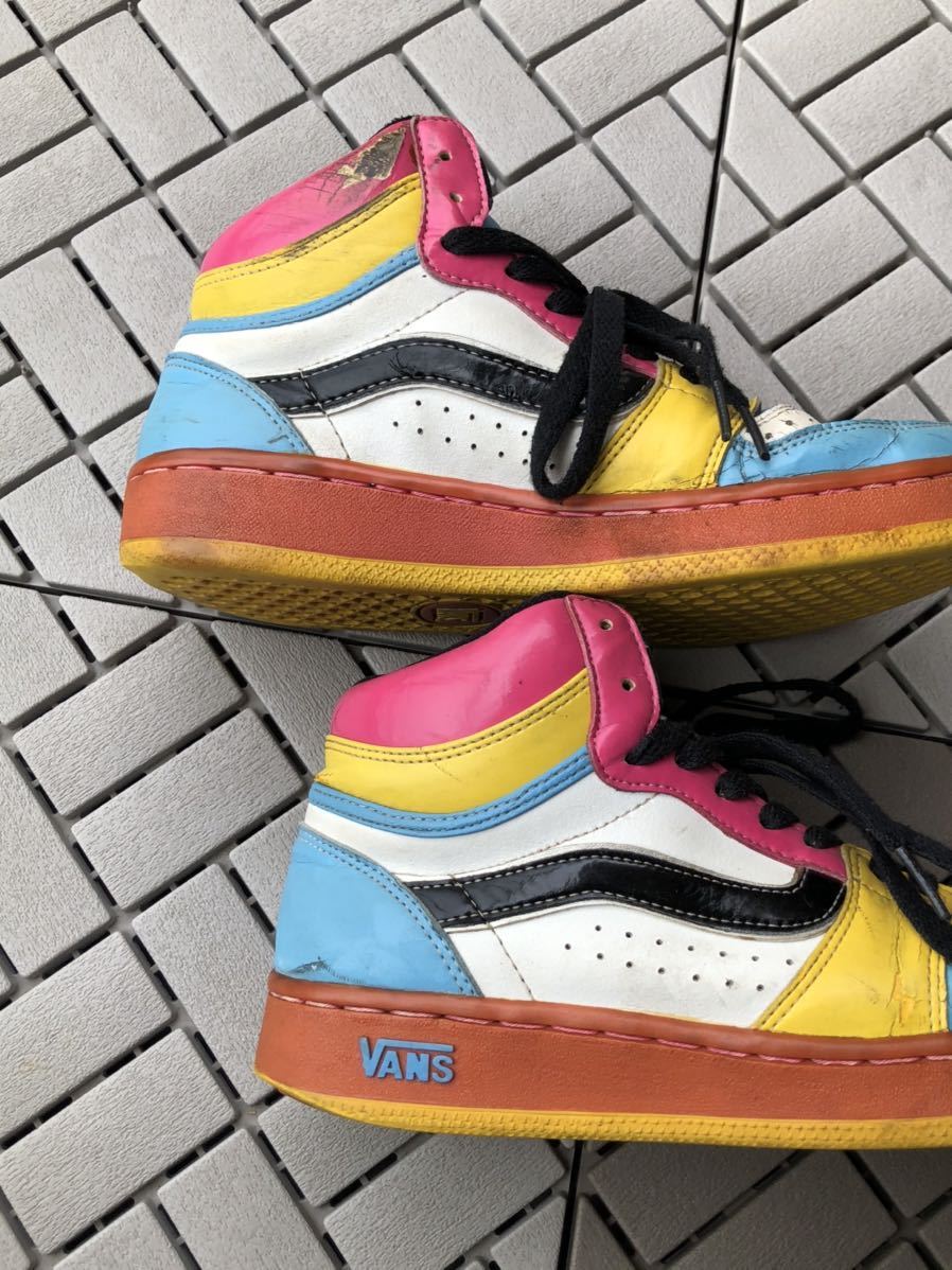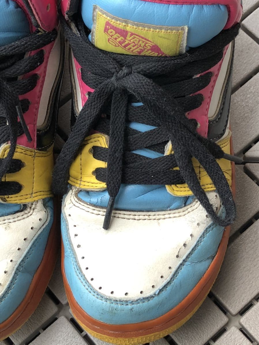 左内側のハイカット部に擦れ傷がありますが、剥がれであり、破れではありません。