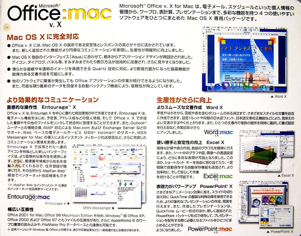 【3828】 Microsoft Office:mac v.X 未開封品 マイクロソフト オフィス Word Excel PowerPoint Entourage エクセル ワード アントラージュ