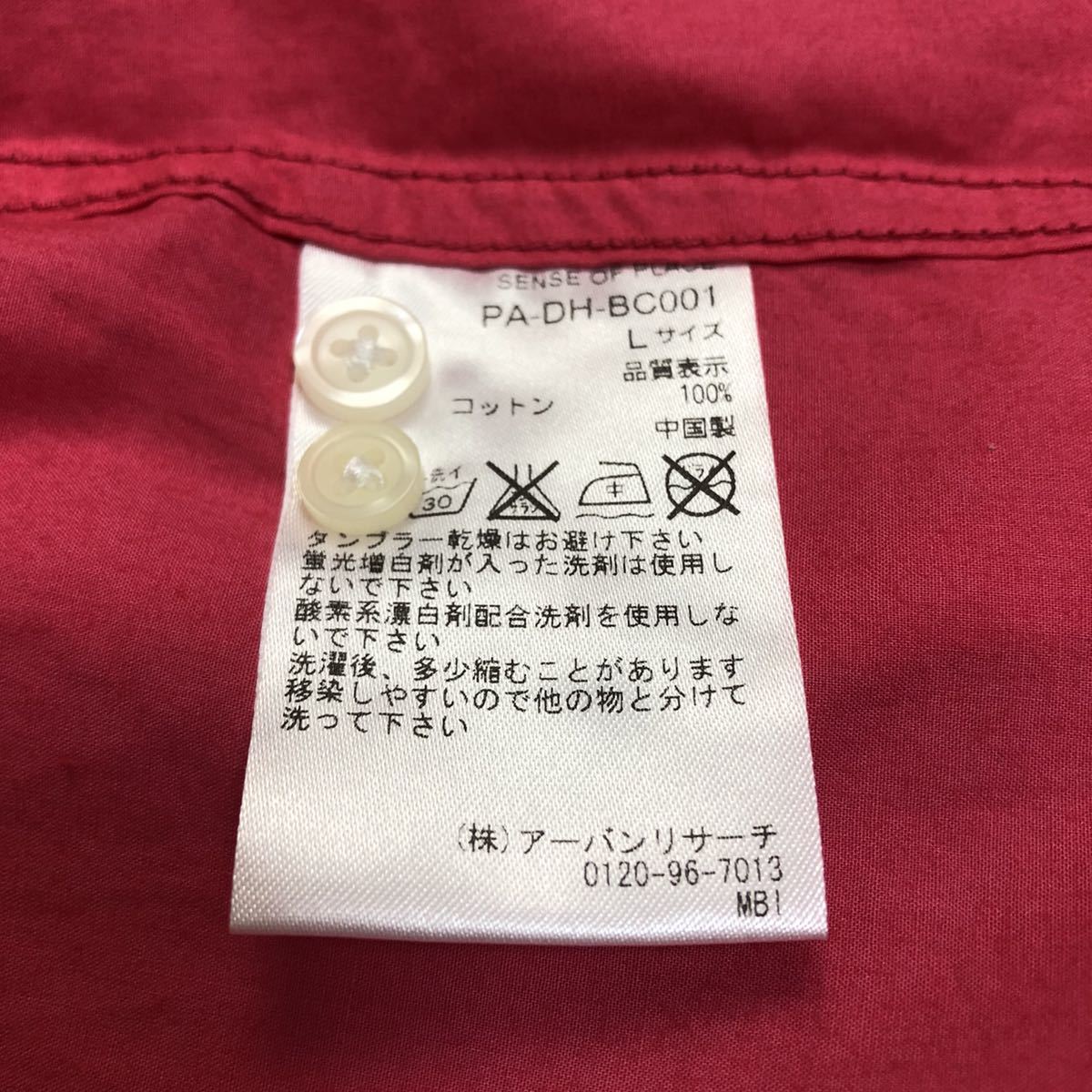 即決★SENSE OF PLACE by URBAN RESEARCH★センスオブプレイス★アーバンリサーチ★メンズ★長袖★シャツ★L★コットン100%★ピンク★