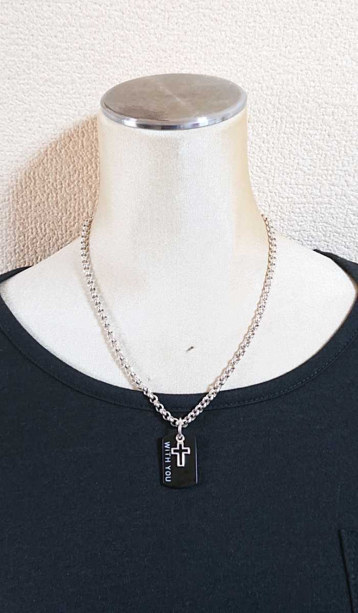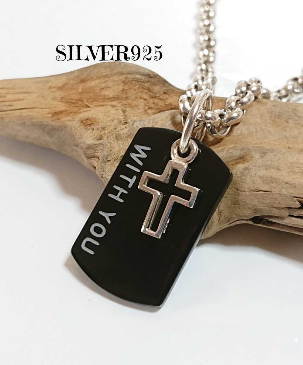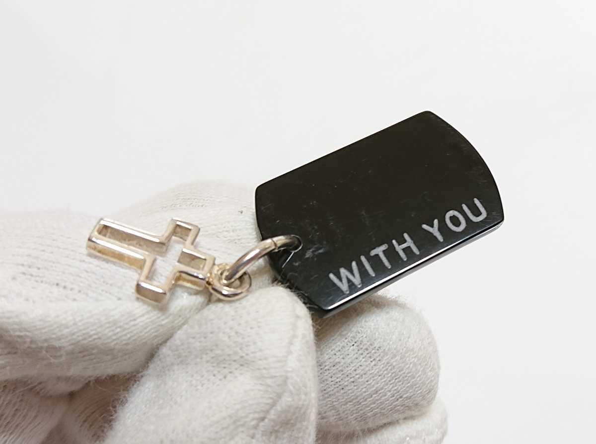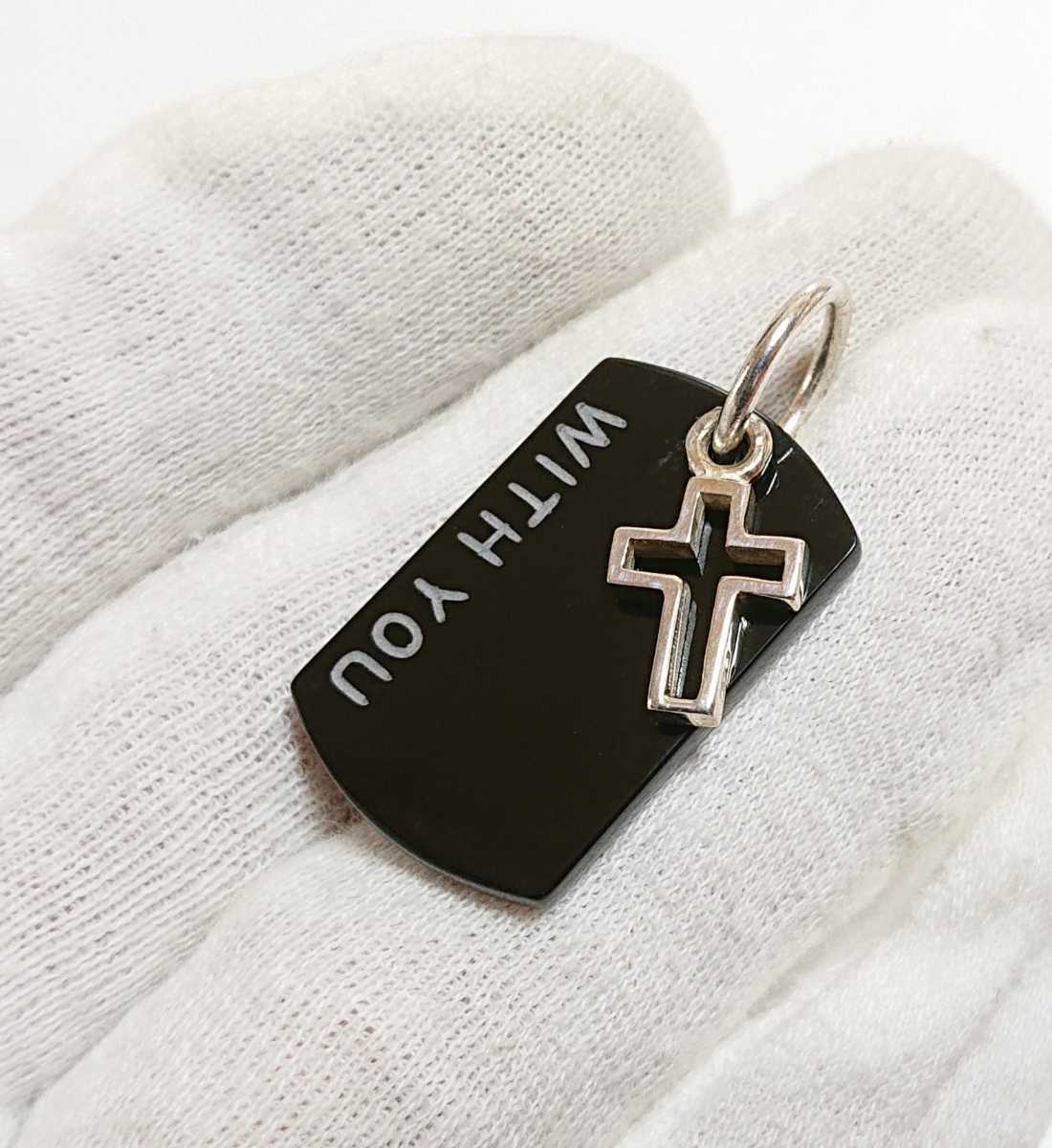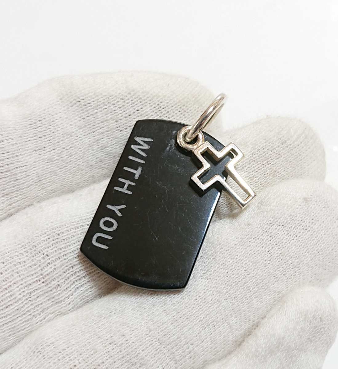 オニキスのプレートに小さなミニクロスのチャームを付けたペンダントトップ☆