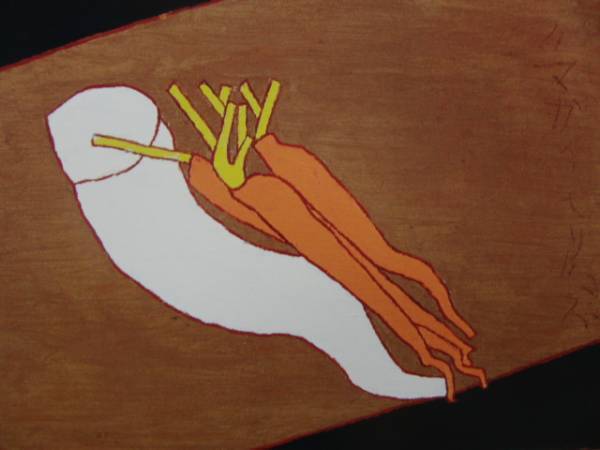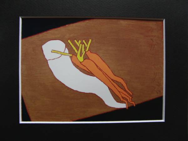熊谷守一、大根に人参、希少大判画集画、新品額装付、iafa