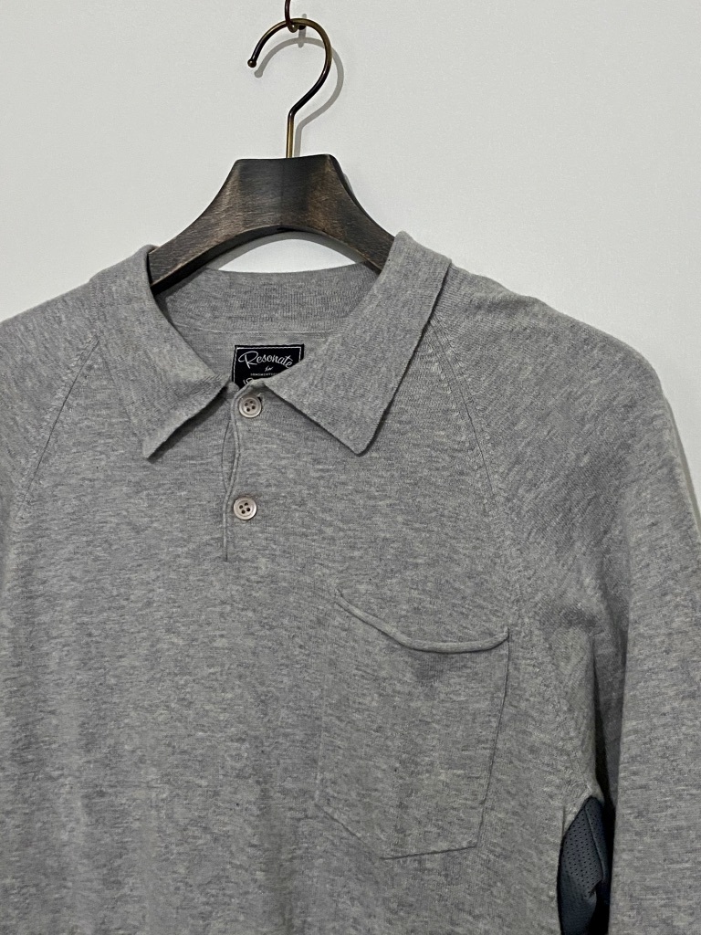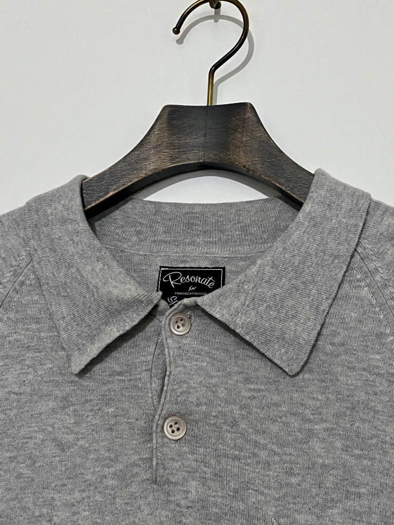 美品☆RESONATE × Fragment Design Speed Line リゾネート フラグメント 襟付き コットンニットセーター S 灰色 グレー メッシュ切替え