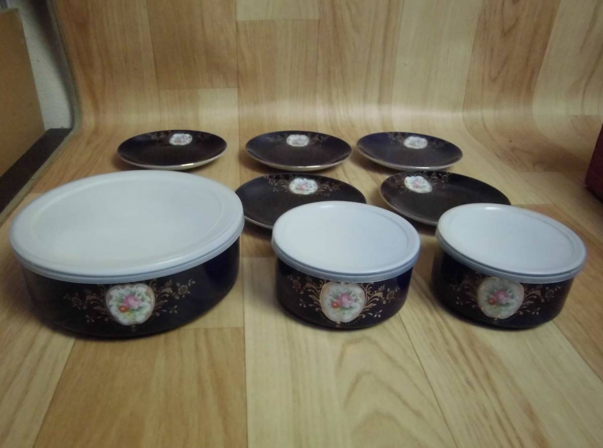 HAND SPRAY KT IN GLAZE ◆小皿5枚& 陶器 保存容器 3個セット