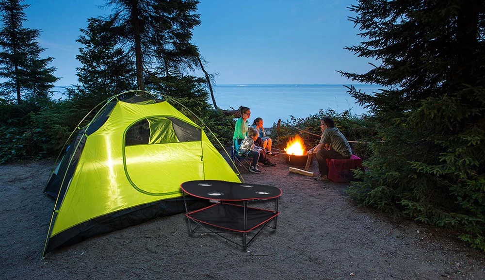 このアルミキャンプテーブルは防水、防錆と耐久性。
