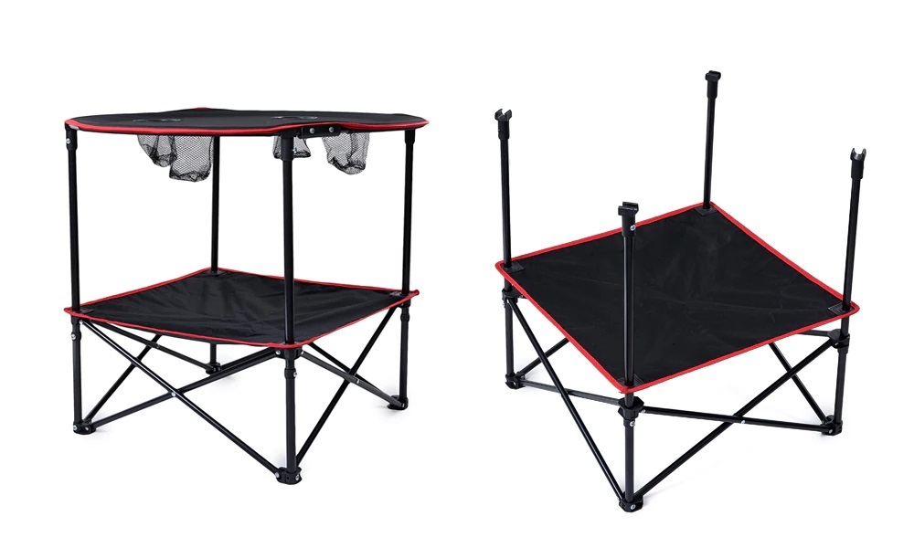 金属フレーム 折りたたみ表ポリエステル 4 メッシュカップホルダーコンパクト折りたたみ折りたたみテーブル 【色:2色】※送料無料