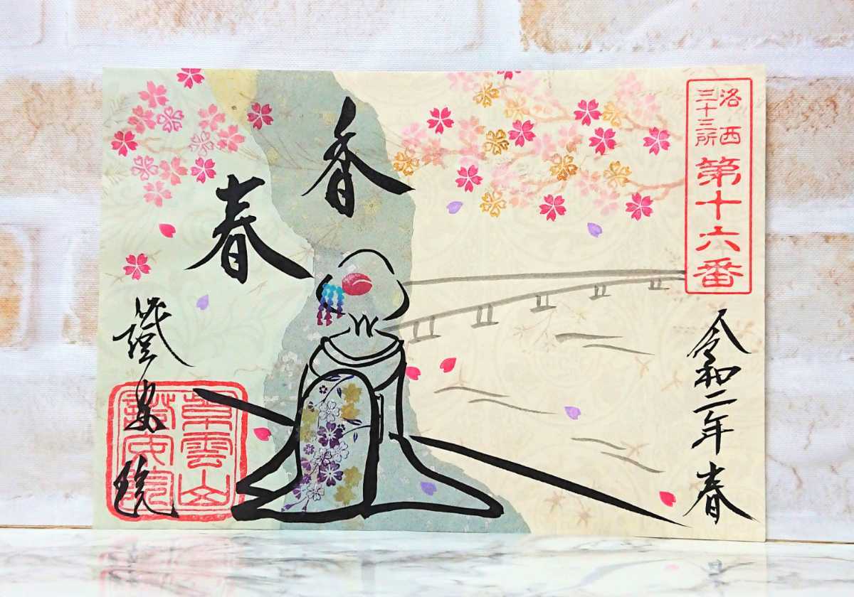 季節にごとに変わる絵などが人気の一つ。うしろ姿の舞妓さんや兎、「無上尊」のご朱印ではお地蔵さんなどバリエーション豊かなラストがひとつひとつ心込めて書かれています。