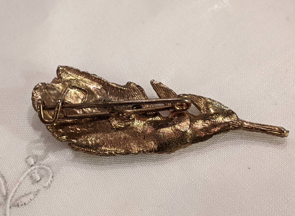 フランスヴィンテージ羽根ラインストーンブローチ/フェザー50’s60’s70’sヨーロッパアンティークレトロラペルアクセサリーΓOT