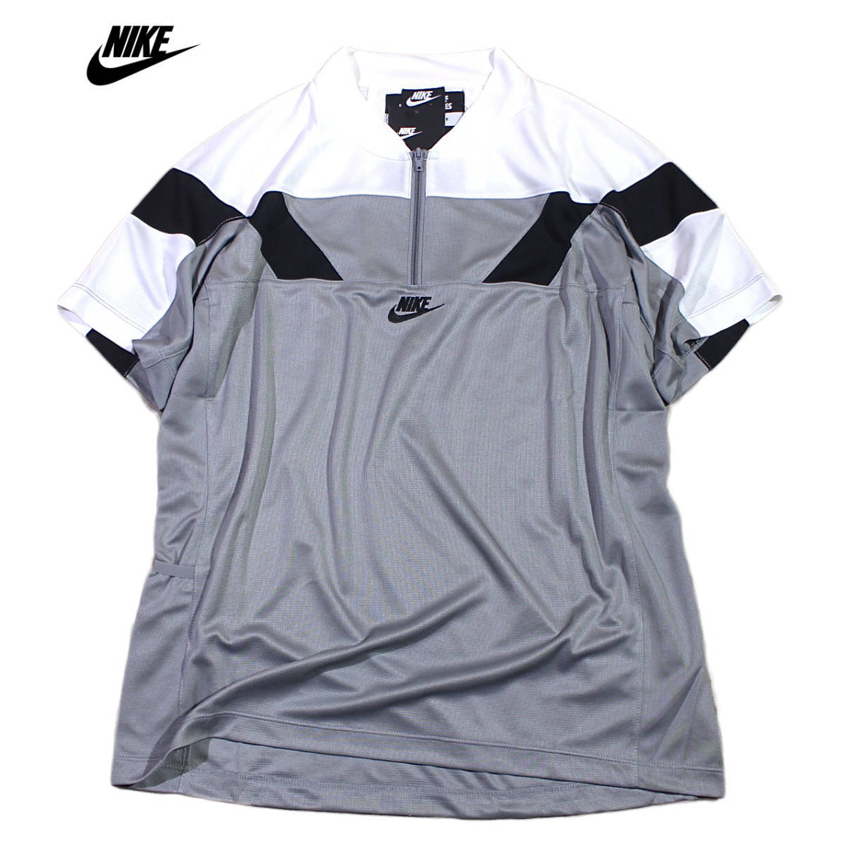 【新品】ナイキ ハーフジップ ニット 半袖 Tシャツ【073:灰】M ピスト サイクリング ジャージ トレーニング ジム NIKE