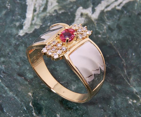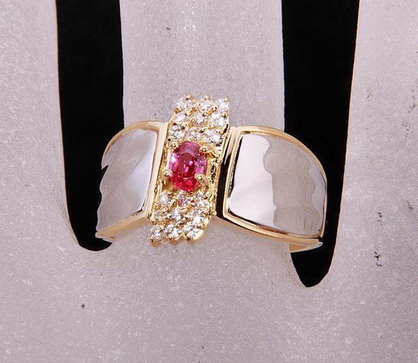 《質屋》Pt900/K18★天然ルビーのエレガントなリング★k-4470